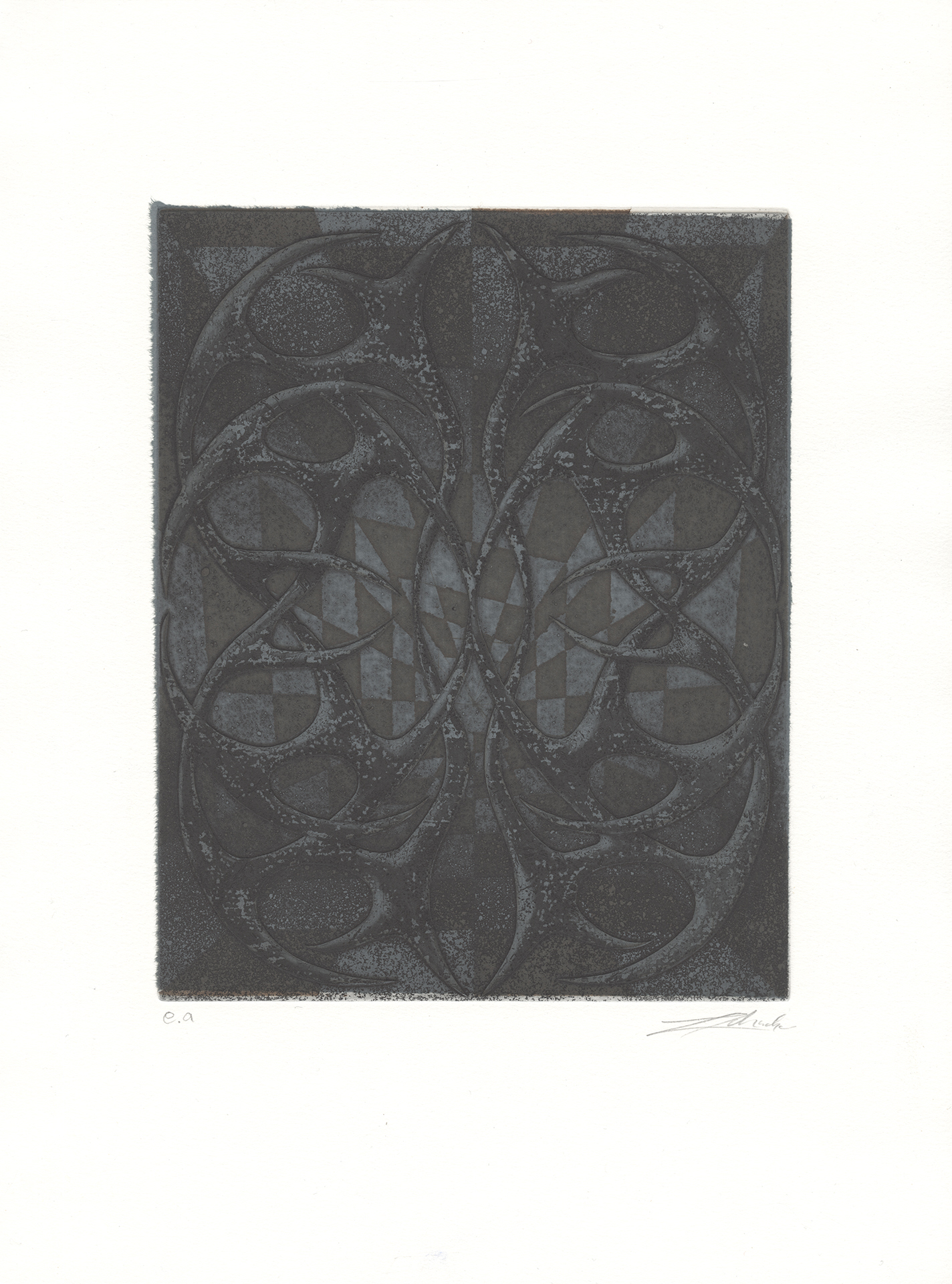 - Drypoint technique, line etching, soft ground, aquatint, and open bite