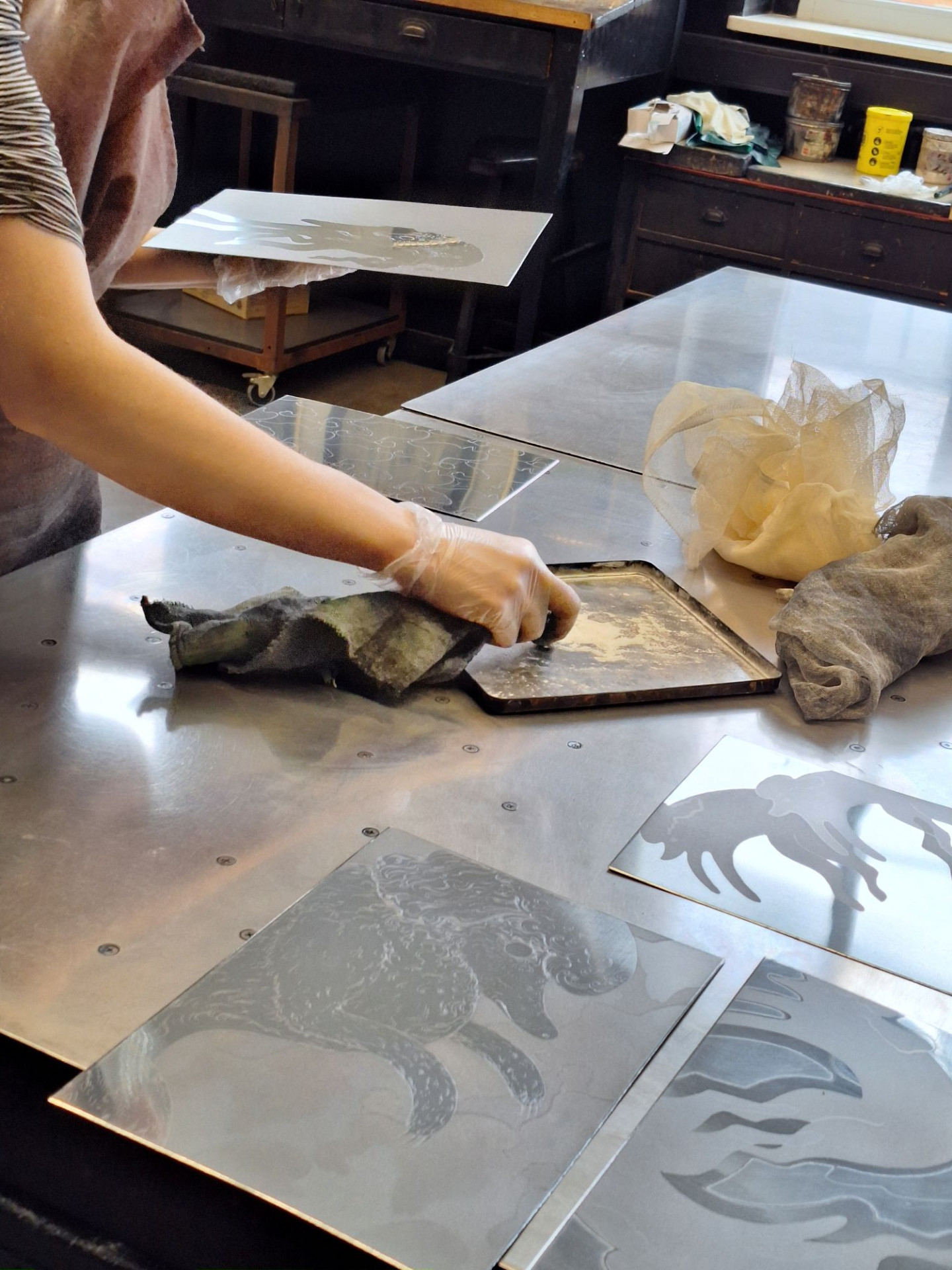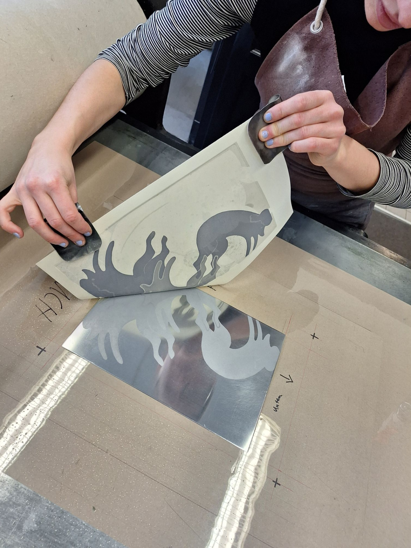 In the etching workshop, we teach students the artistic form of intaglio printing. As their knowledge and skills grow, they can realize their own challenging projects using one of the oldest and most vibrant printing techniques.