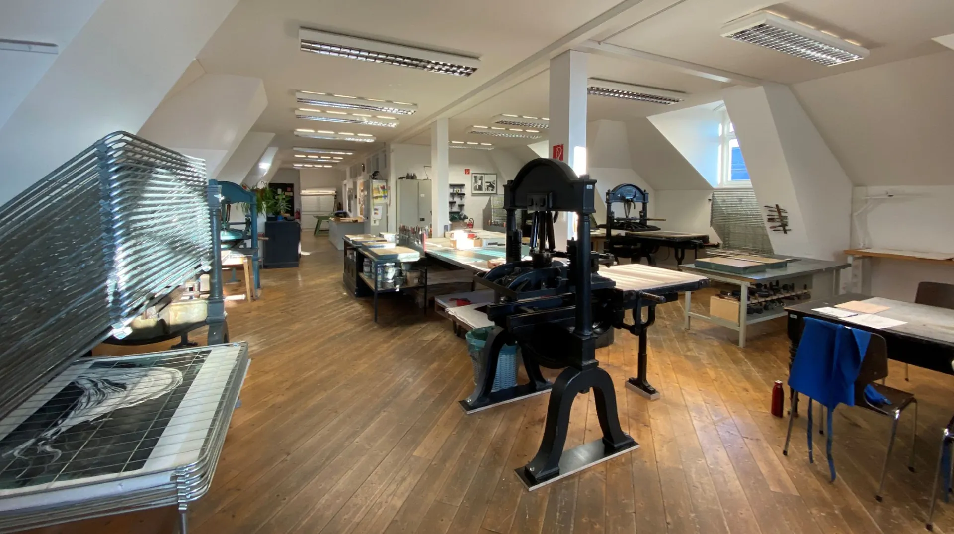 In the woodcut workshop, prints can be produced using relief printing techniques. Access is granted to students by completing the introductory course during the foundation course or with relevant prior knowledge. The workshop is run by a qualified instructor.