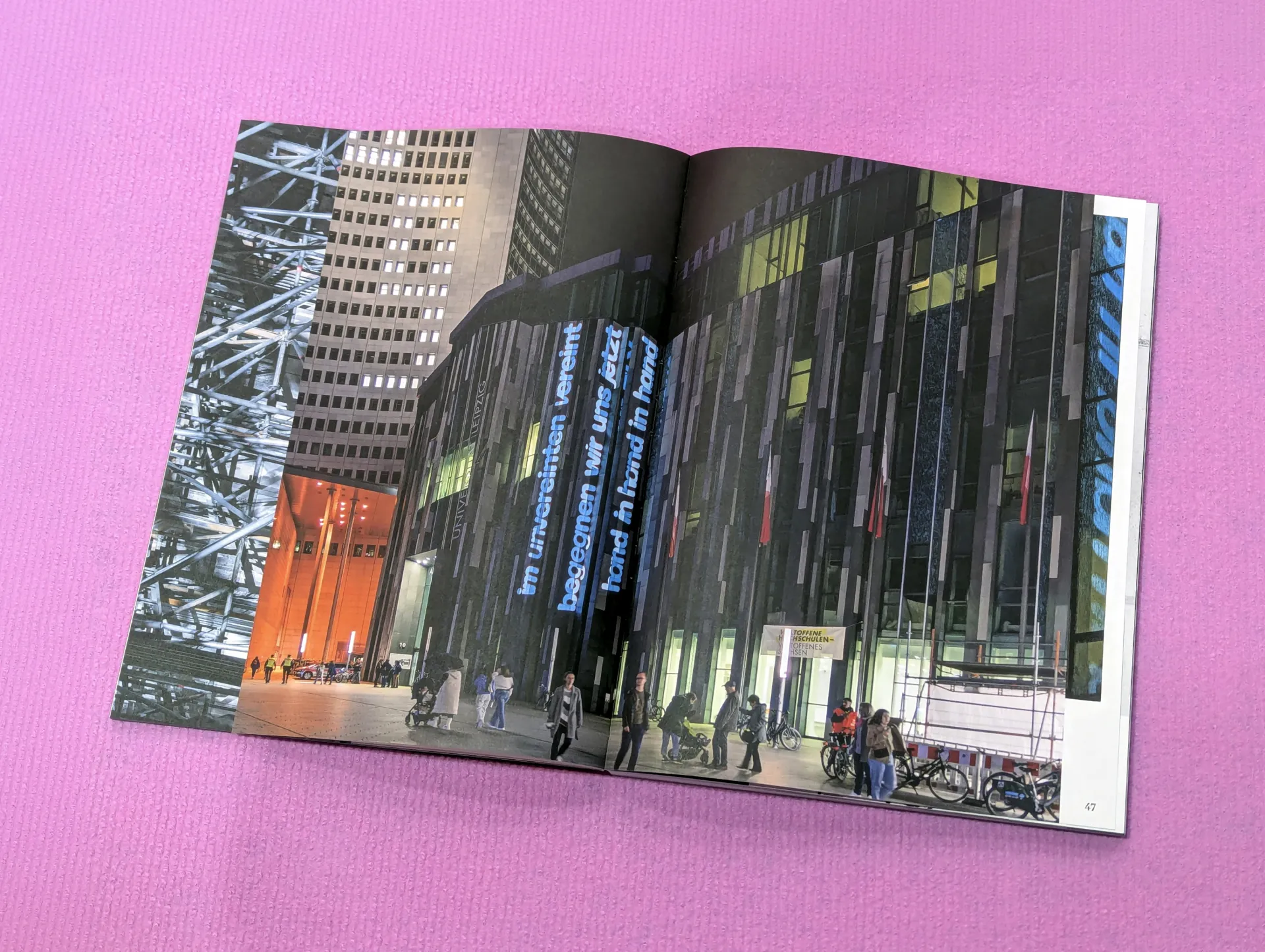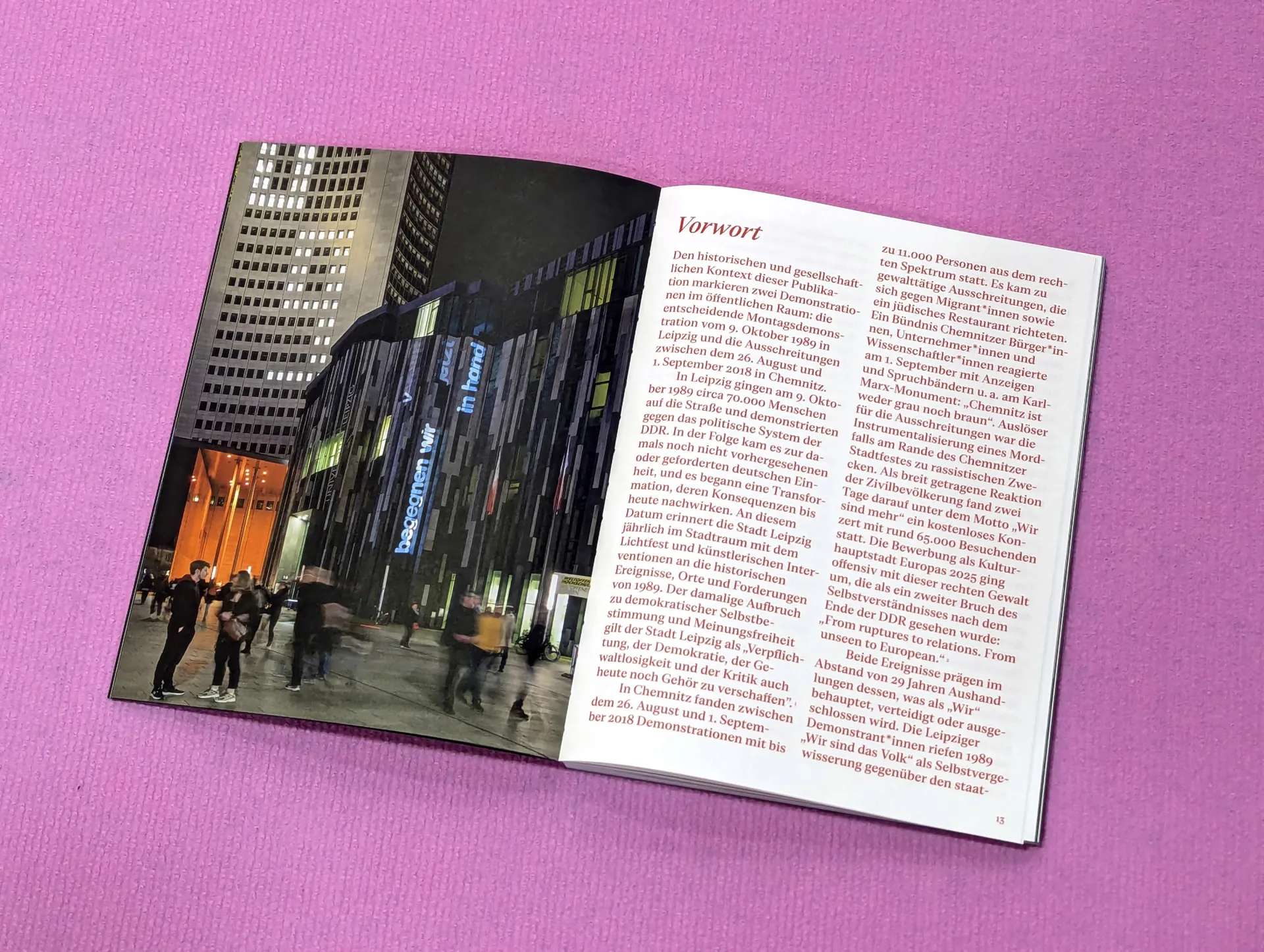 unvereint⁄vereint dokumentiert das gleichnamige zweiteilige Ausstellungsprojekt der Hochschule für Grafik und Buchkunst Leipzig (HGB), das 2024 zum Leipziger Lichtfest in Erinnerung an die Friedliche Revolution erstmals präsentiert und 2025 im Rahmen des Kulturhauptstadtjahres in Chemnitz fortgeführt wurde. Die Publikation versammelt künstlerische Positionen von Studierenden und Absolvent*innen der HGB zu gesellschaftlicher Transformation, Erinnerungskultur und der Aushandlung von „Wir“-Identitäten und setzt diese in Beziehung zu historischen, politischen und urbanen Kontexten.