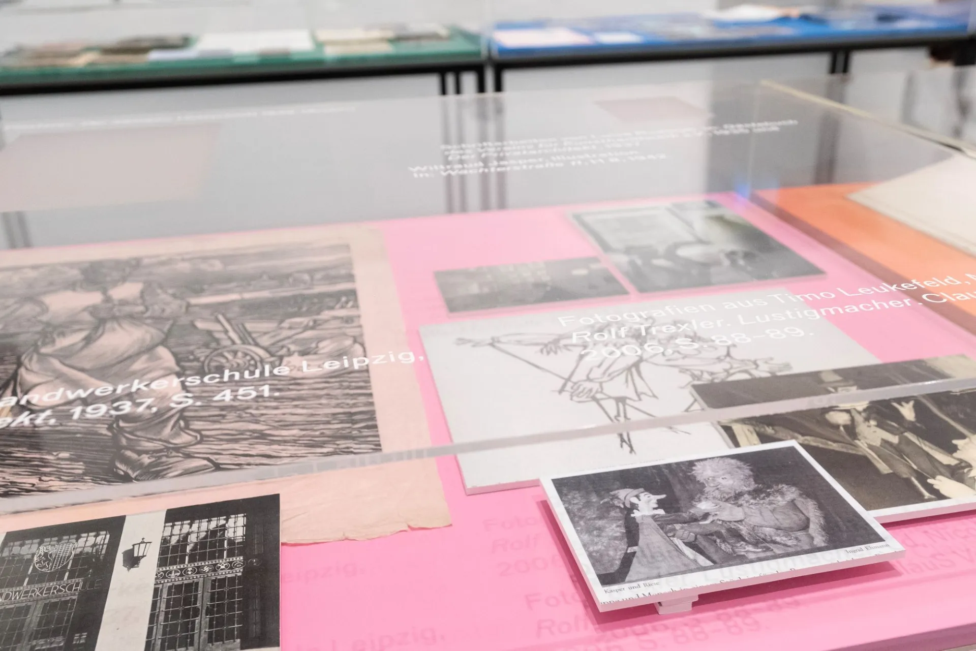 Wichtige Information lassen sich auch aus biografische Ausführungen zu ehemaligen Lehrenden der Hochschule ziehen: Der Illustrator Hugo Steiner-Prag, Künstlerischer Leiter des Propyläen-Verlags, Präsident der Internationalen Buchausstellung (1919-1927) hatte seit 1910 eine Professur an der Akademie inne. Er wurde auf Grund seiner jüdischen Herkunft sofort 1933 entlassen. Auch der Maler und Grafiker Willi Geiger verlor 1933 sein Lehramt an der Hochschule. Durch das Dresdner Ministerium wurde 1934 mit Walter Gasch ein aktives NSDAP-Mitglied zum stellvertretenden Direktor berufen. 1937 mussten Hans-Alexander Müller, Lehrer der Holzschnittklasse, und der Grafiker und Illustrator Dr. Hellmuth Weissenborn die Akademie verlassen. Beide waren mit Jüdinnen verheiratet. Eine wichtige Quelle zur Zeit zwischen 1940 und 1944 bildet die vom NS-Studierendenbund herausgegebene Zeitschrift „Wächterstraße 11“ mit Veröffentlichungen von Soldatenbriefen und Berichten aus dem Akademiealltag. Einzige Neugründung in jener Zeit war 1940 das Institut für Farbenfotografie, dessen Leiter mit Studentinnen an der Erfassung von Denkmalen im Rahmen des „Führerauftrags Monumentalmalerei“ beteiligt war. Eine lückenlose Darstellung der Geschehnisse ist mit dem gegenwärtigen Wissenstand nicht möglich, Leerstellen werden in der Ausstellung aufgezeigt. Vorgestellt werden auch Projekte und Veröffentlichungen der Hochschule, die sich in jüngerer Zeit mit dem Nationalsozialismus und seinen Auswirkungen auseinandersetzen. Die Präsentation will zur weiteren gemeinsamen Forschung einladen.