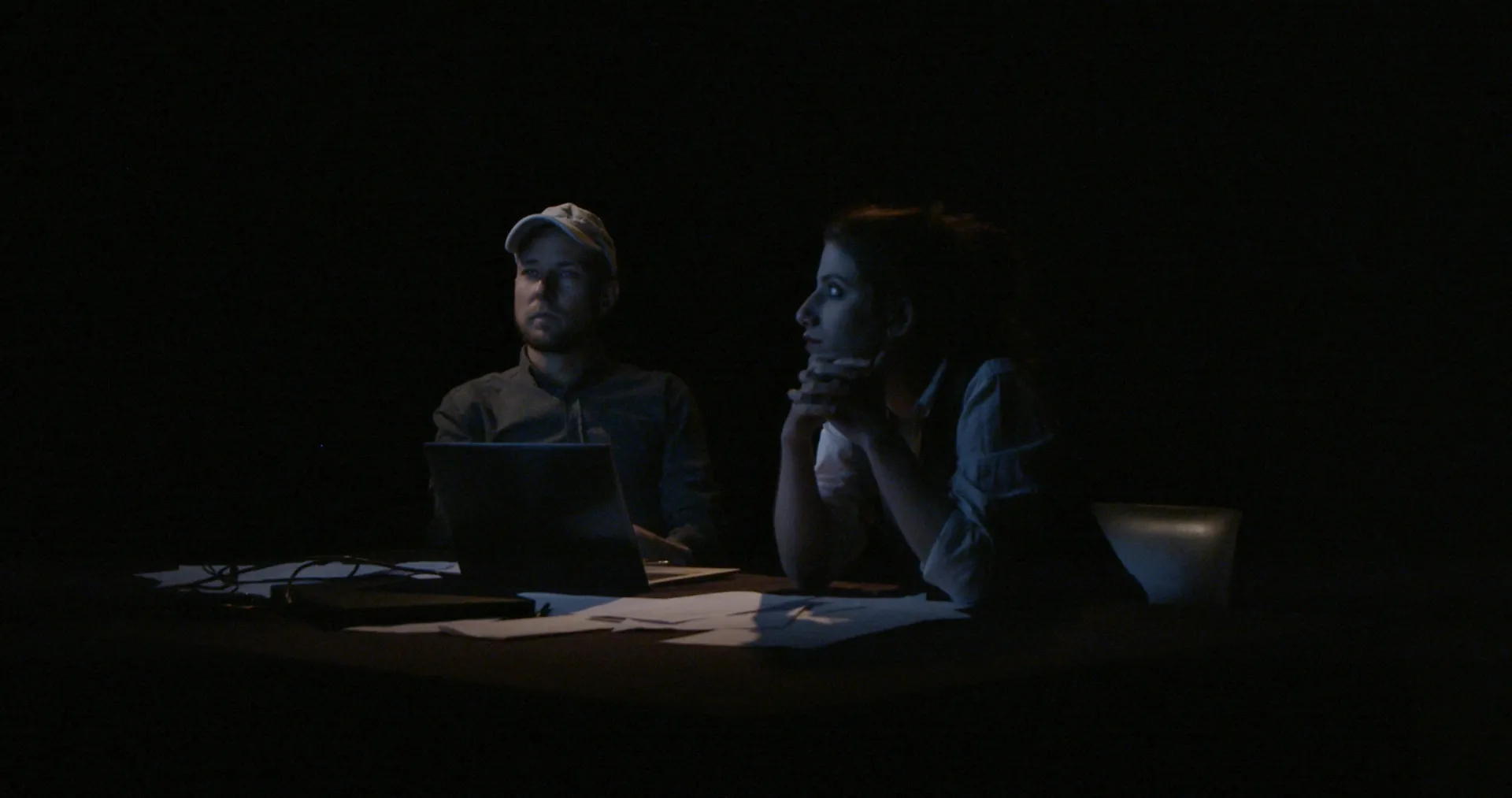 Die Klasse für Expanded Cinema hat einen gemeinsamen Film produziert, der eine Reflexion über Bilder der Welt im Umbruch darstellt. In „We Are Making Good Progress“ wurden drei verbundene Szenen im Videostudio der HGB umgesetzt. Sie zeigen Menschen beim Betrachten, Bearbeiten und Reflektieren von Bildern und Tönen. Die Bilder, über die verhandelt wird, sind dabei nicht zu sehen. Vielmehr geht es um die Kontexte und die Wirkung von Bildern im künstlerischen Prozess sowie um Affekte und Bildpolitiken in einer Zeit digitaler Bildveränderung, beispielsweise durch künstliche Intelligenz, (Selbst-)Zensur und Identität. Die Bilder scheinen dabei immer weiter zu verschwinden, bis schließlich sogar die Sprache infrage gestellt wird. Von der Idee über das Drehbuch bis zu Regie und Schauspiel wurden alle Aufgaben in der Klasse verteilt.
