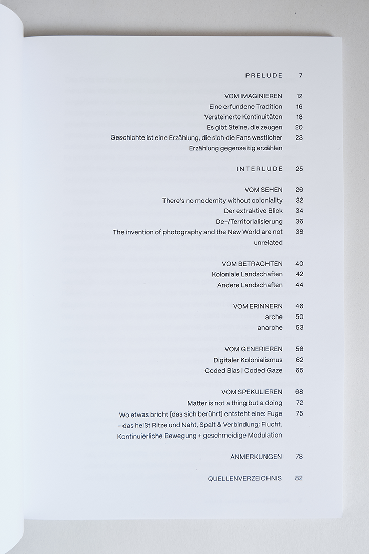 Die multimediale Arbeit reflektiert dabei auch die extraktiven Logiken fotografischer Bilder – in ihrer Herstellung, Zirkulation und Materialität. Fotografie wird nicht nur als bildgebendes Medium verstanden, sondern als Teil eines extraktiven Apparats dessen Bildträger selbst auf kolonialen Stoffen und Materialitäten beruhen – von Silber bis Daten. So entsteht eine Reflexion über Medienextraktivismus, in der die Materialitäten der Bilder mit der Erinnerungspolitik des Denkmals verschränkt werden.