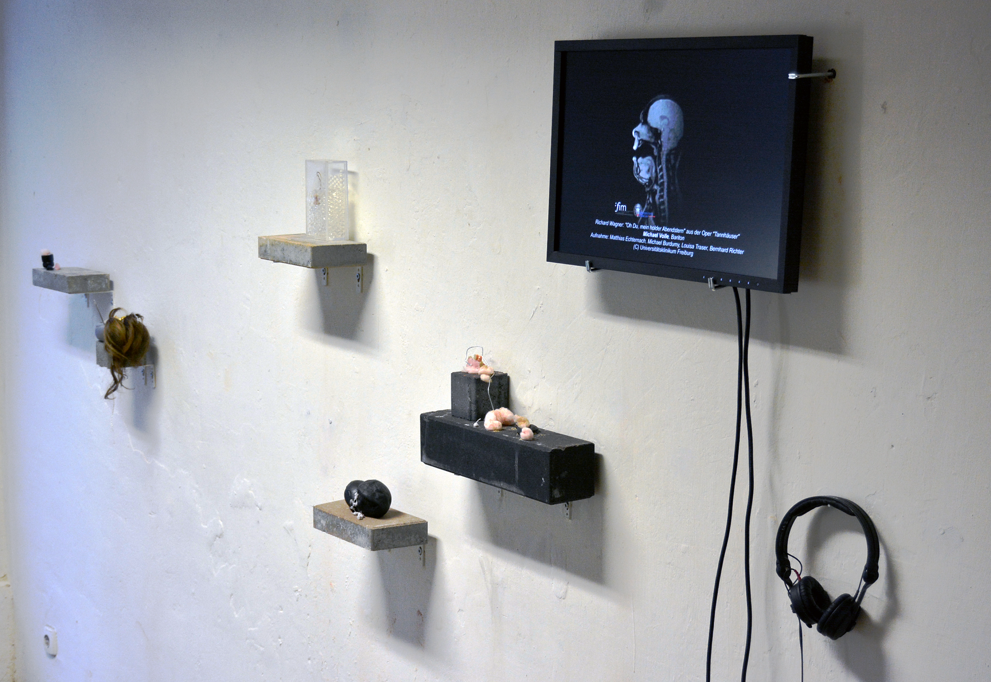 Ausstellungansicht: (H)ear, Objekte, 2021/ O du mein holder Abendstern, Found Footage, 2021