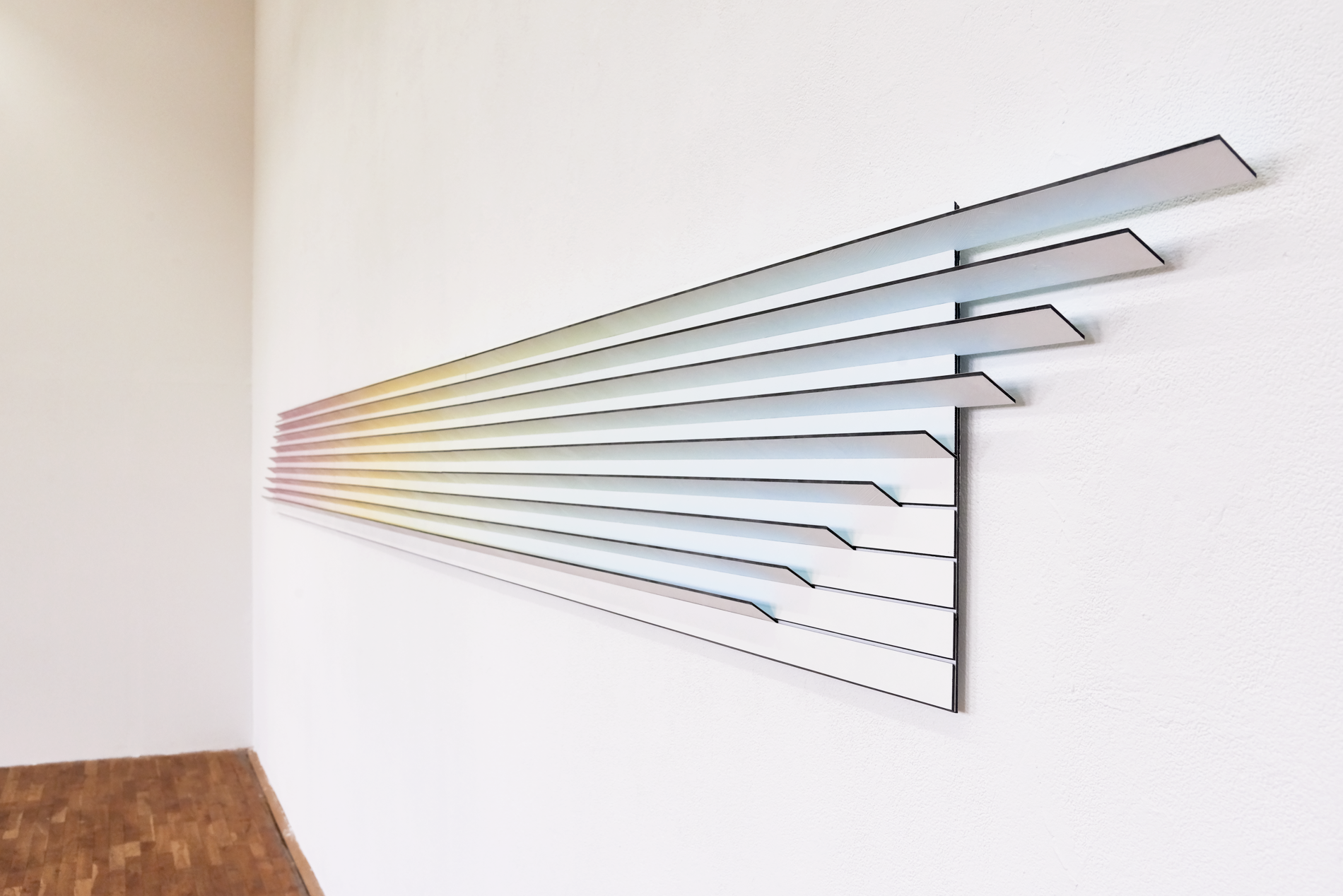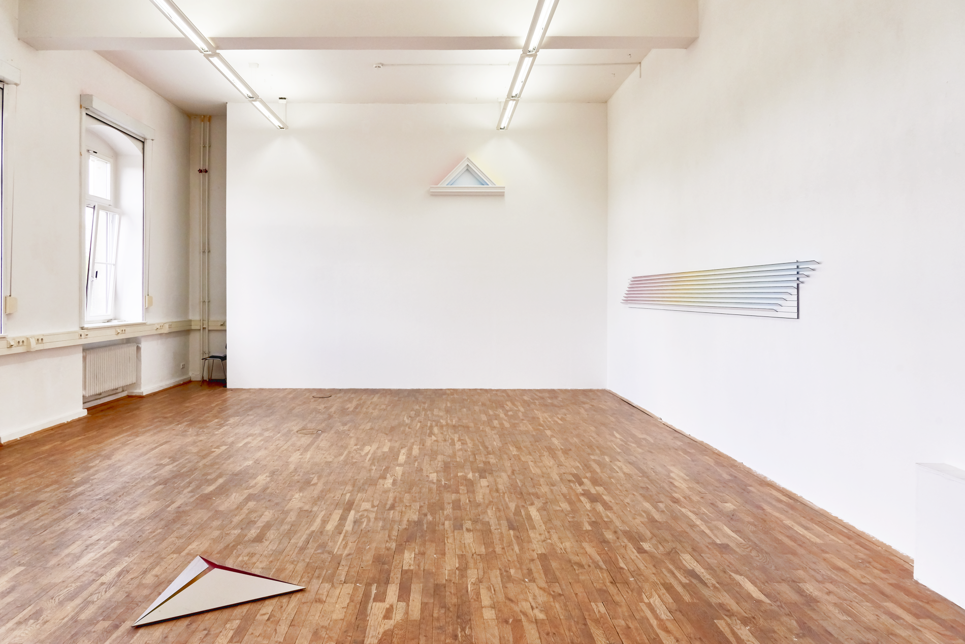 Licht trifft auf Oberflächen und wird von diesen reflektiert. Nur ein Bruchteil davon erreicht unsere Augen und die Anordnung der eintreffenden Strahlen bestimmt unsere visuelle Wahrnehmung der Umgebung. Die ausgestellten Objekte und Interventionen modifizieren Formen und deren Oberflächen, um die gewohnte Wahrnehmung zu irritieren. In der Ausstellung sind unterschiedlichen Objekte aus der Werkreihe „Diffusor“ positioniert, die das oben beschriebene Prinzip der diffusen Farbspiegelung aufgreifen. Die, meist temporären, malerischen Interventionen im Außen- sowie Innenraum greifen dabei indirekt und subtil in die alltägliche Wahrnehmung der Passanten ein. Das Bildmotiv bzw. die bemalte Architektur spielt mit der Wahrnehmung des Ortes und bezieht sich zum Teil direkt auf Elemente, die in der unmittelbar sichtbaren Umgebung zu finden sind.