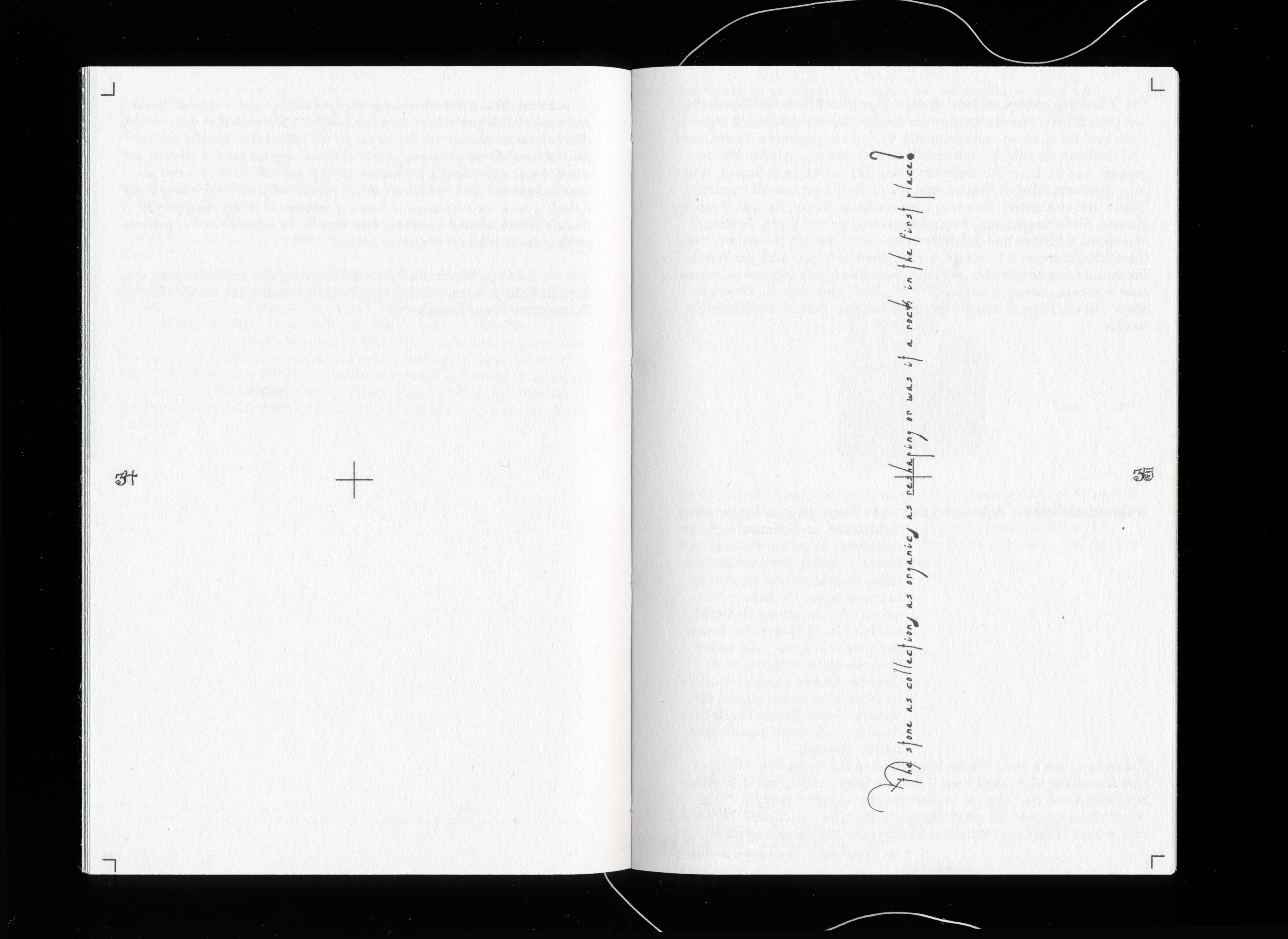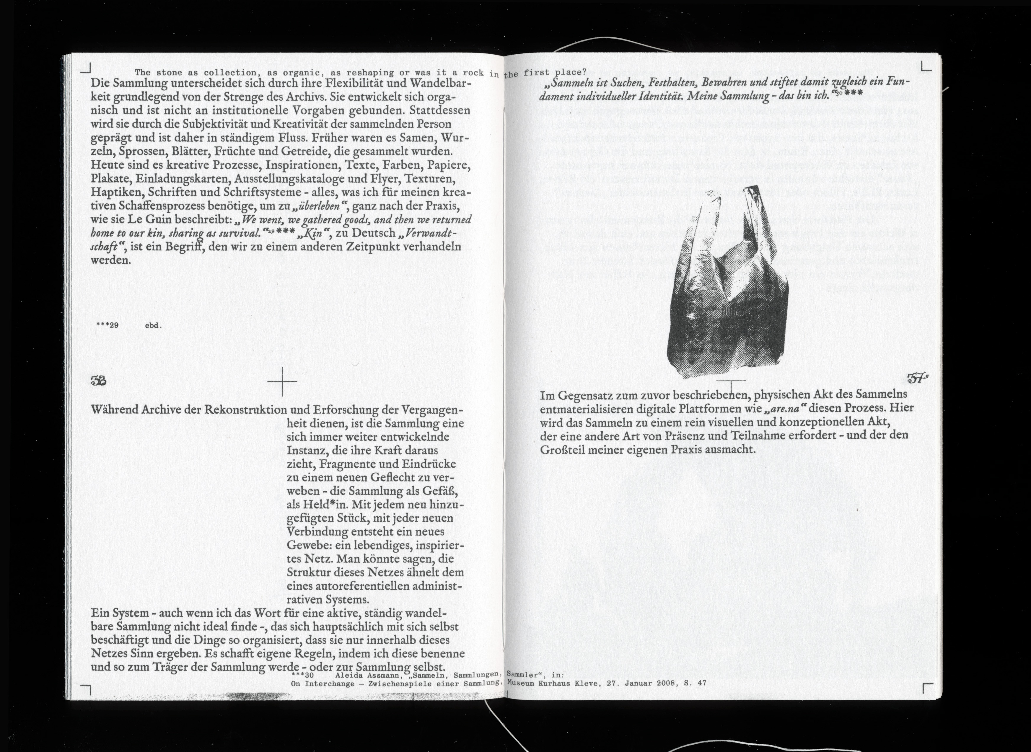 Das Buch Collecting as Collaborating ist kein Abschluss, sondern ein Übergang. Ein Blick zurück und ein tastendes Weiter. Ein Index von Verknüpfungen, eine Versammlung von Fragmenten. Ein Möglichkeitsraum für das, was entsteht, wenn wir einander Steine weiterreichen — und mit ihnen das, was wir sammeln, erinnern, erzählen. Eine Sammlung, die nicht archiviert, sondern lebt — ein weiches Gefüge aus Gedanken, durchzogen von Spuren, Einflüssen, Gesprächen. Eine gestalterische Praxis, die sich nicht als System begreift, sondern als etwas Wandelbares. Als Bewegung.