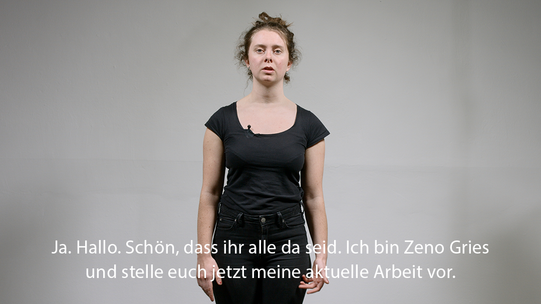 Im Zentrum der Arbeit steht die enge Zusammenarbeit mit der Schauspielerin Lola Mercedes Wittstamm, die den Auftrag hat, mich vor der Kamera zu verkörpern. Im Film stellt sie als Zeno Gries ebendiese Arbeit vor, die gerade im Entstehen begriffen ist. Durch die Rollen Schauspielerin — Regisseur, deren Machtverhältnis ständig wechselt, zeigen sich die thematischen Schwerpunkte wie Repräsentation und Identität, Original versus Adaption. Da Lolas Aufgabe als Schauspielerin aber darin besteht, ich zu sein, bleibt auch unklar, ob sie nicht eigentlich Regisseurin dieses Films ist.