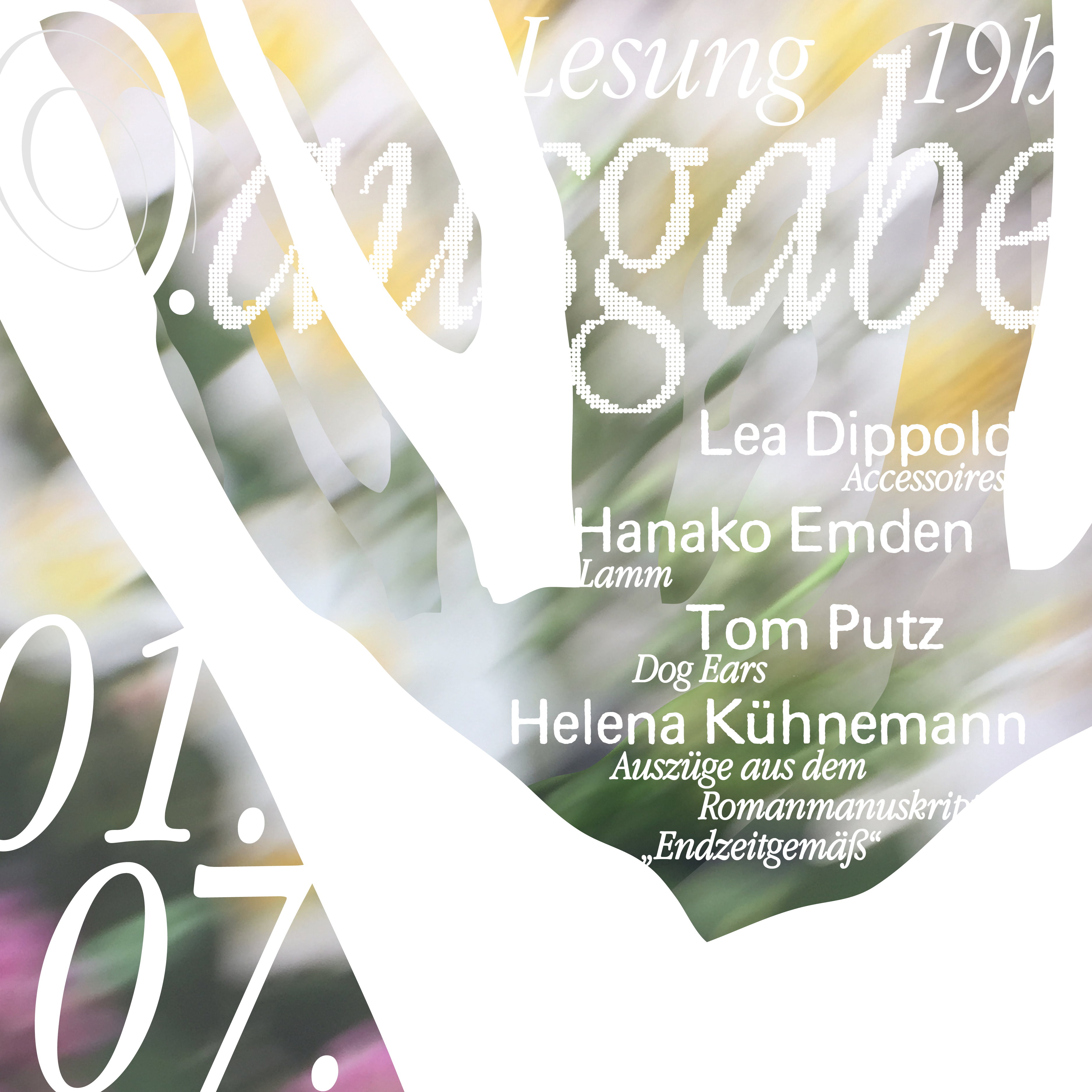 Plakat Lesung Burenschänke mit Tom Jan Putz, Lea Dippold, Tom Jan Putz; Gefördert durch das Studentenwerk Leipzig, Graphic Design by Hanako Emden