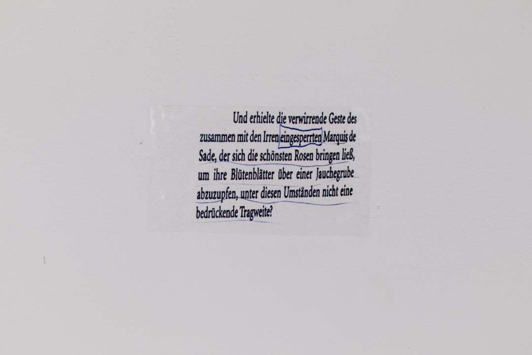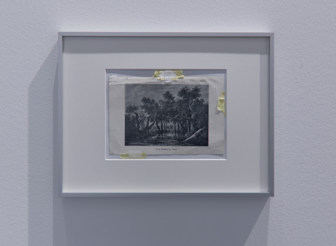 Der Sumpf, yellow masking tape, ripped out book page, framed, 2024