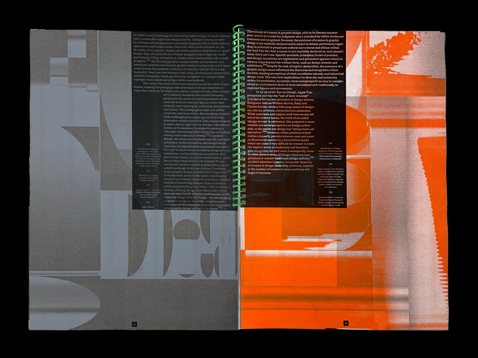 Auf einer Karte sind alle Arbeiten der HGB-Absolvent*innen angeordnet. Farbig dargestellt ergeben sich sechs tendencies: solid, soft, dense, open, dynamic, static. Jede*r Absolvent*in hat für das eigene Abschlussprojekt von diesen sechs unterschiedlichen Zuschreibungen keine, eine einzige oder mehrere ausgewählt, die z. B. im Hinblick auf den Inhalt und/oder die Materialität der eigenen Arbeit, und/oder völlig anderer Aspekte erfolgen (z.B. wie fühlt sich meine Arbeit für mich an?). Auf diese Weise machen die Gestalter*innen Zuschreibungen der künstlerischen/gestalterischen Arbeiten auf verschiedene Weise interpretierbar und geben allen Künstler*innen die Möglichkeit, eine individuelle Bedeutung für ihre eigene Arbeit zu finden. Das Konzept von Carla Selva Matthes und Ris Pascoe schlägt damit eine offenere Neustrukturierung von Organisationssystemen, im Unterschied zur Unterteilung in Fachklassen oder Medien, hin zu einer assoziativen Repräsentation vor, die nach einem „common ground“ zwischen den Disziplinen sucht. Das Venn-Diagramm stellt alle möglichen Relationen der vertretenen Zonen dar. Die fachgebiets- und fachklassenübergreifenden Begriffe schaffen neue Nachbar*innenschaften und Verwandtschaften einzelner Arbeiten zueinander und geben in ihrer Gesamtheit möglicherweise Aufschluss über Tendenzen, die einen oder mehrere Jahrgänge auszeichnen.