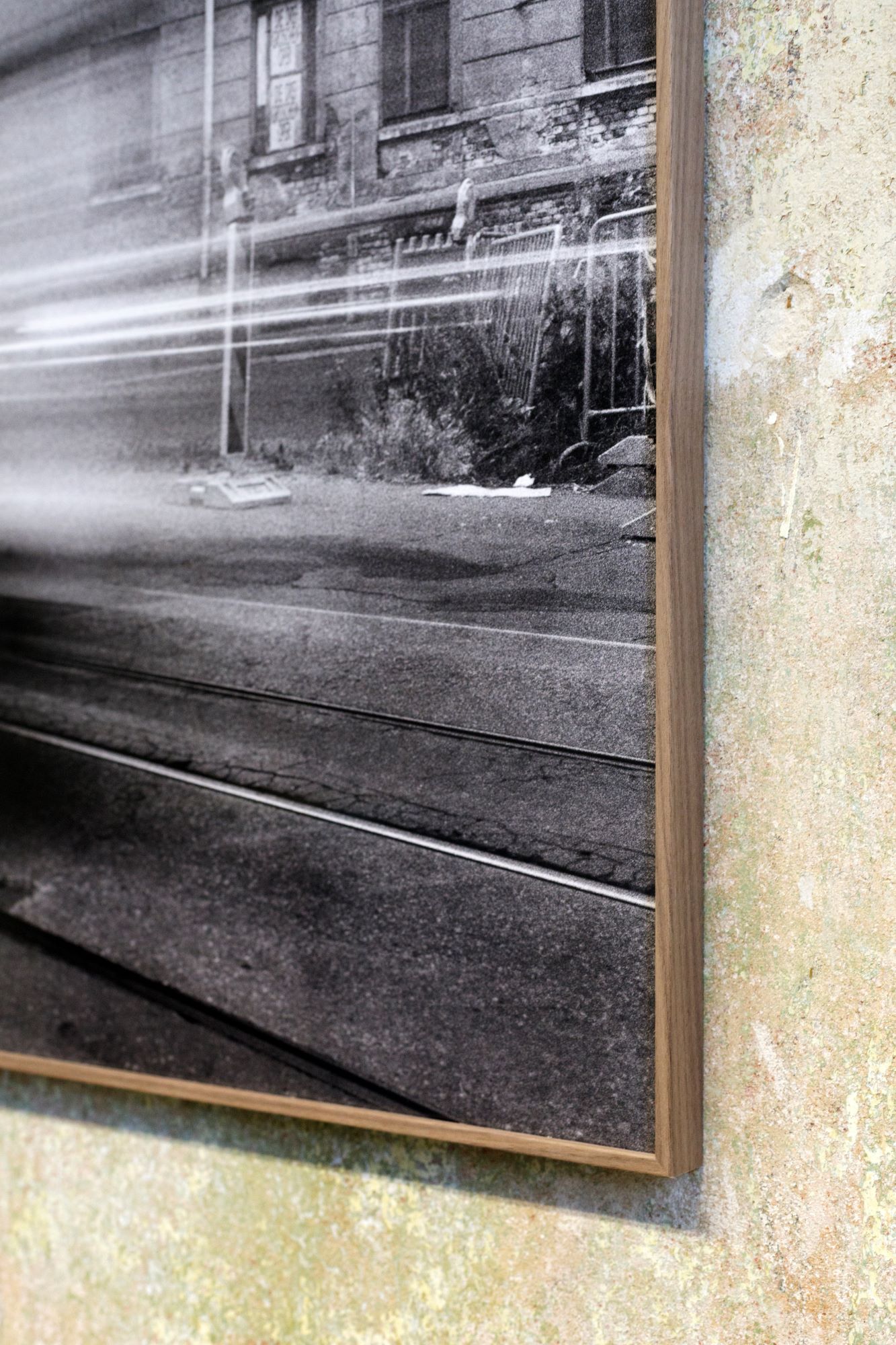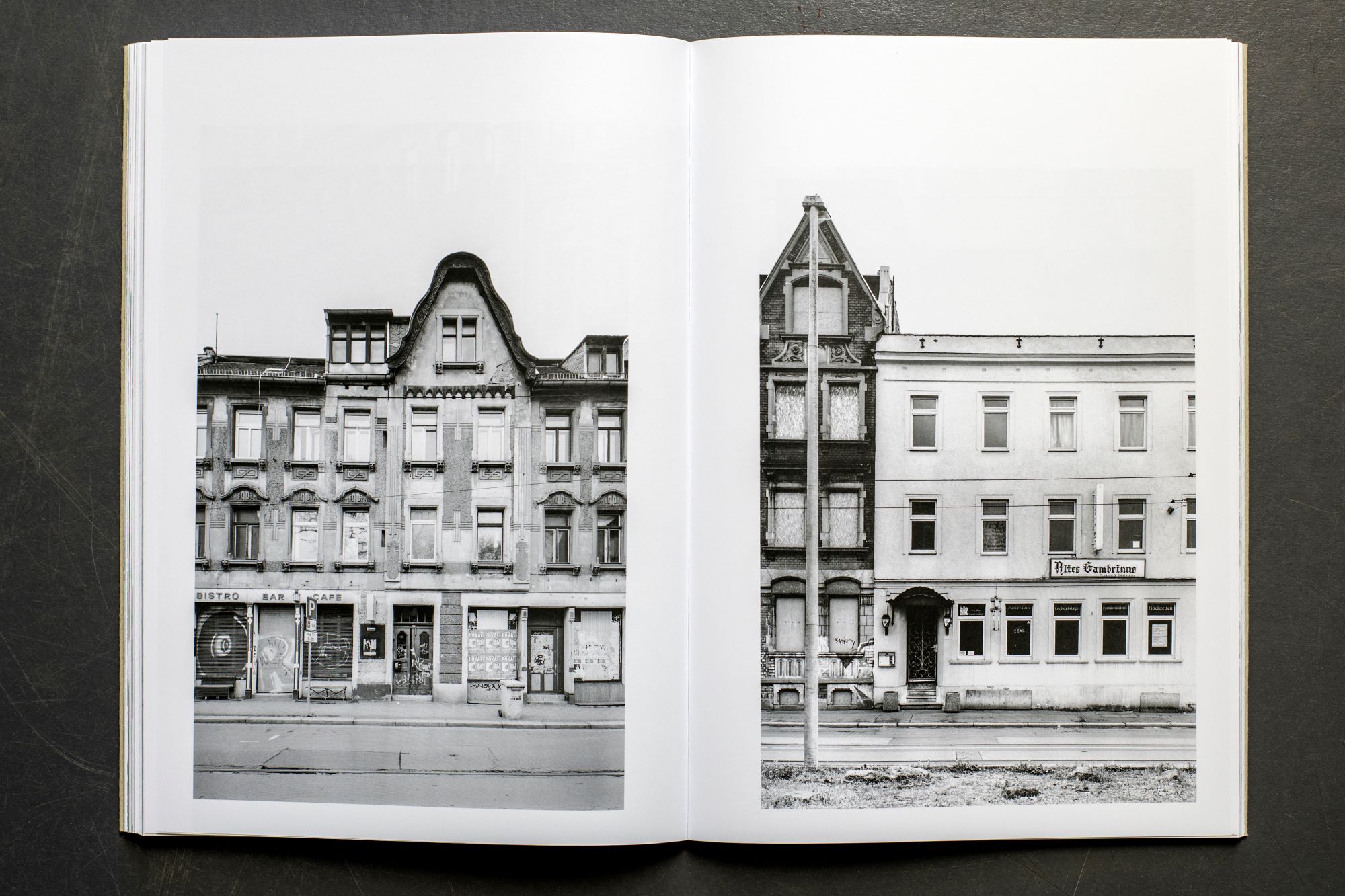 Als ich dorthin zog, stand gefühlt jedes zweite Haus leer, teilweise war der Verfall so drastisch, dass die Gehwege abgesperrt werden mussten. 2014 fiel mir durch Zufall eine Kiste voller Orwo-Negative, Mittelformatrollen und Großformat-Planfilme 13×18 in die Hände. 1987 in Wolfen-Bitterfeld produziert, wusste ich damals nicht warum. Aber der Drang, diese 2,9 km lange Straße, jedes unsanierte oder zumindest leer stehende Haus zu fotografieren, beschäftigte mich seitdem. Die Zeit verging und langsam füllten sich die Häuser mit neuen Bewohner*innen, zum Erstaunen der Besitzer*innen. Gleichzeitig füllte sich mein Archiv. Ein kleiner Teil des Innenhofs wurde zum Kinderspielplatz und jedes Jahr wurde mindestens ein weiteres Haus in der Nachbarschaft renoviert. Irgendwann kam die Ankündigung, dass der gesamte Abschnitt vom Leutzscher Rathaus bis zum S-Bahnhof saniert werden sollte. Als die Straße aufgerissen wurde, begann ich, meine Nachbar*innen in diesem Umfeld zu porträtieren.
