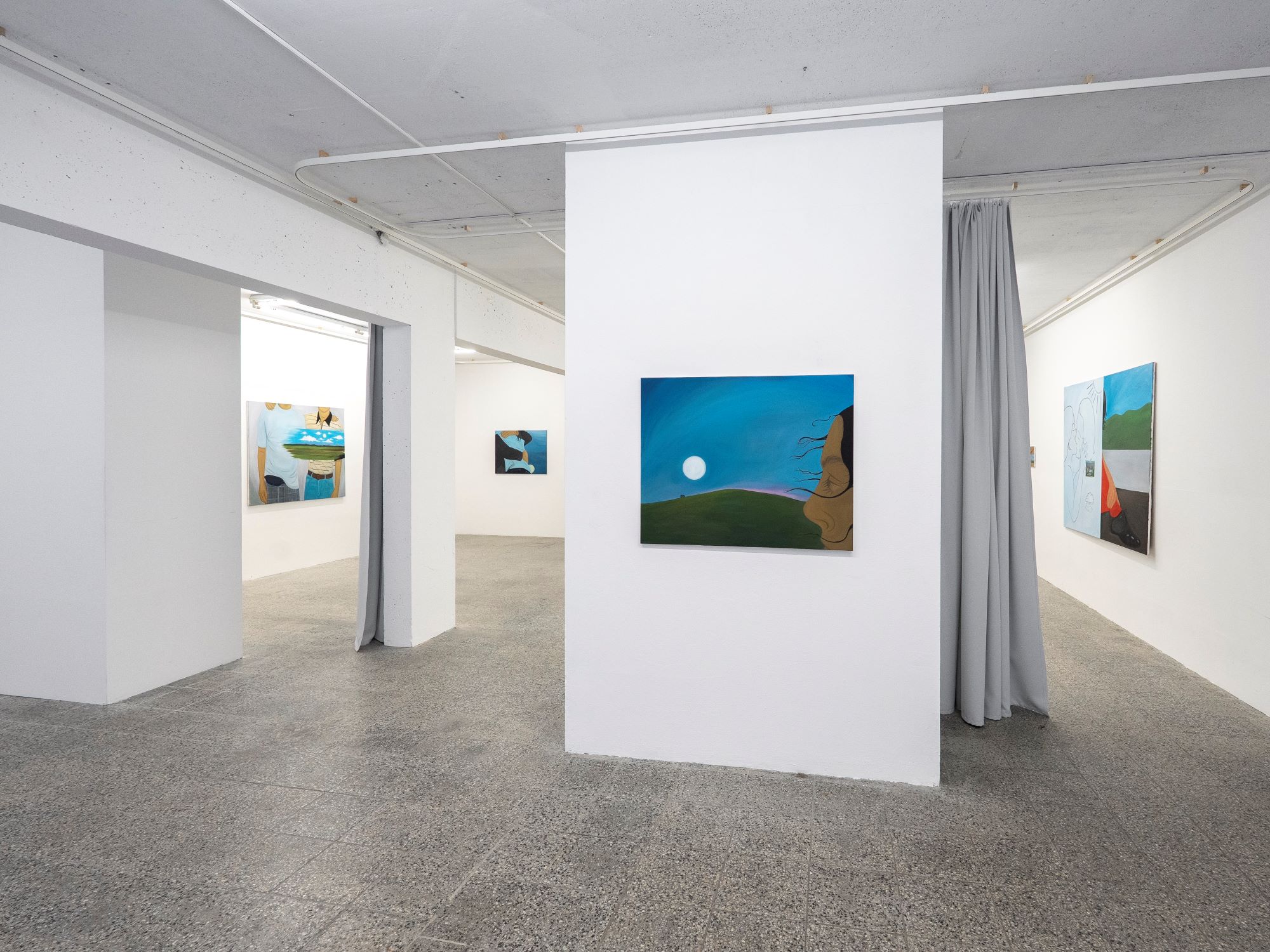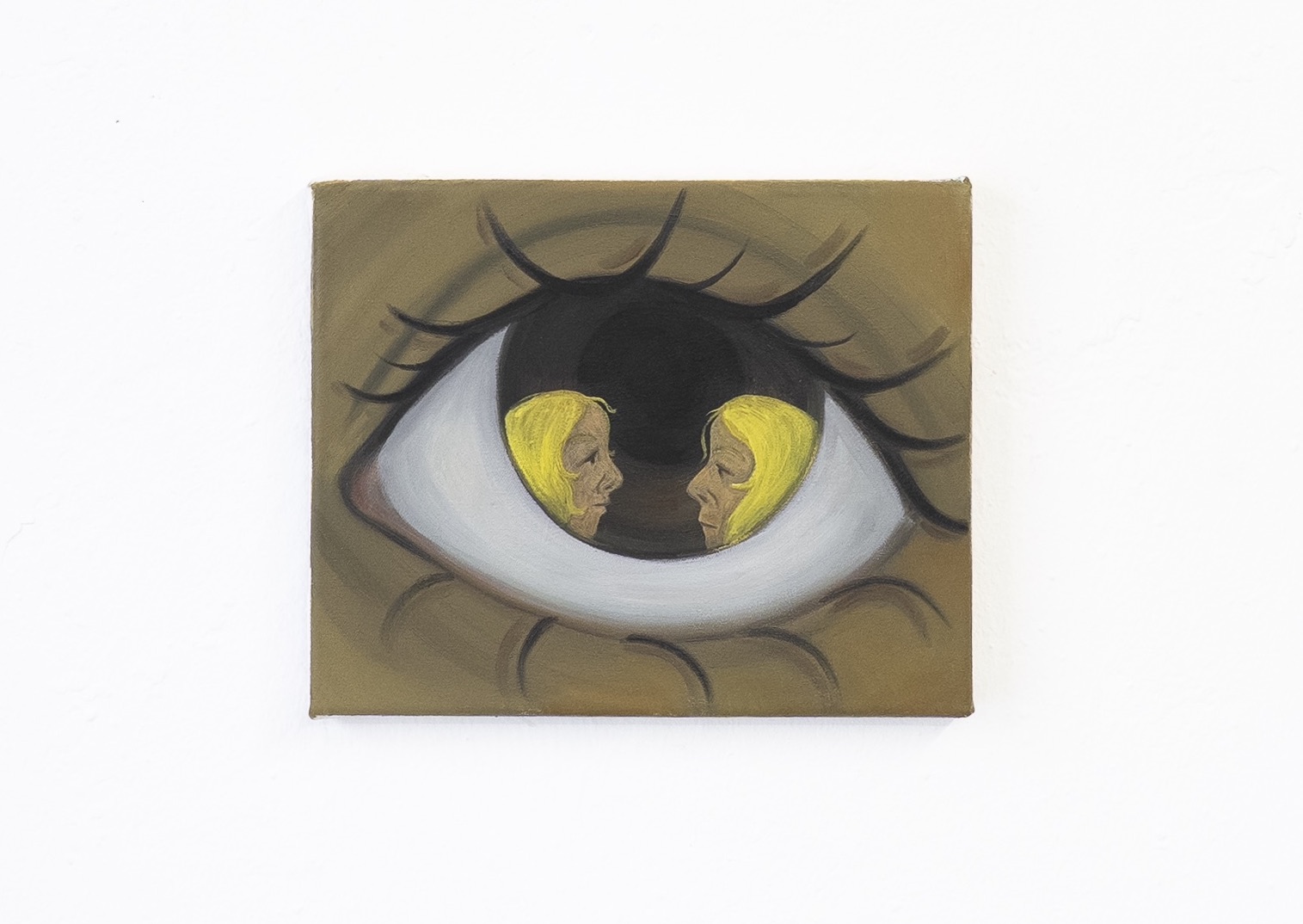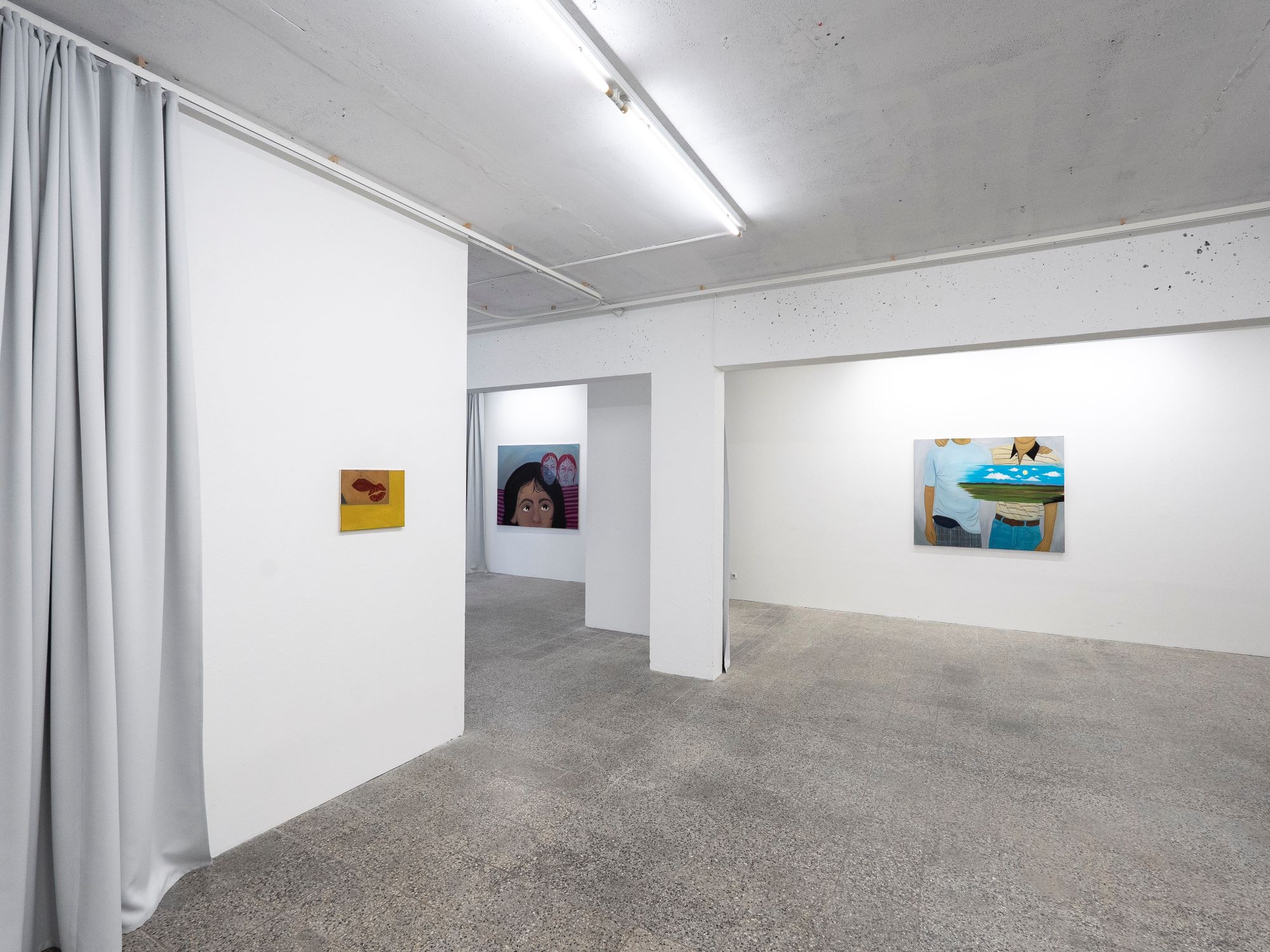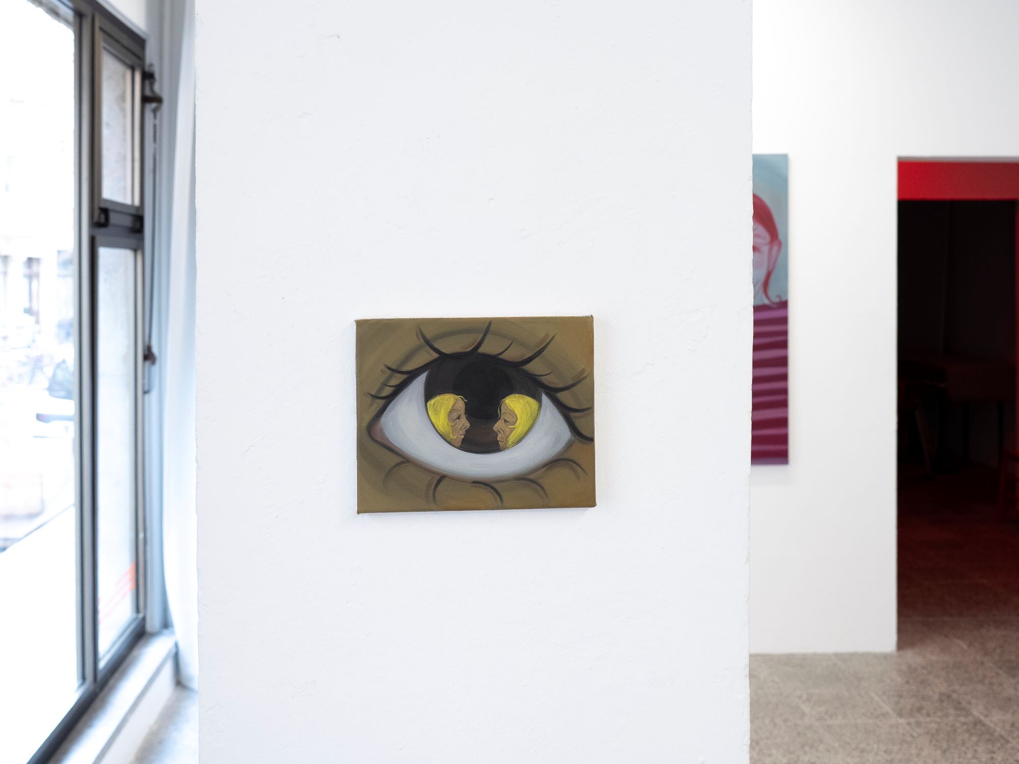 Der flache Farbauftrag und der unauffällige Duktus lassen eine glatte Fläche entstehen. Ähnlich wie ein Fenster oder ein Bildschirm zwingt sie die Betrachtenden zur voyeuristischen Anteilnahme an den sich ihnen darbietenden Szenen. Szenen, die oft zu persönlich sind, um ihre wahre Zeug:innenschaft einfordern zu können – denn ihre Lesbarkeit verschwimmt mit der Fremdheit der betrachtenden Person.