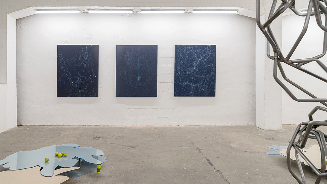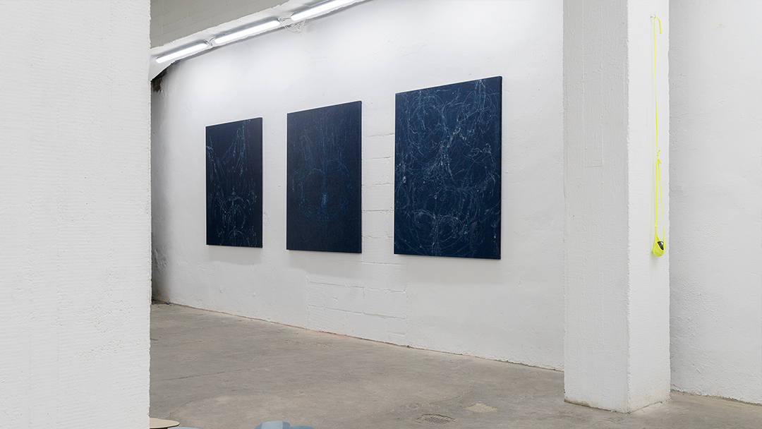 In meiner Arbeit it’s a hand job prallen Begehren und Ablehnung aufeinander. Sie reiben sich aneinander, hinterlassen wechselseitig ihre Spuren und verbinden sich möglicherweise zu einer dritten Instanz. An dem Punkt, an dem ein Bild nicht mehr nur ein Bild ist und an dem ein Körper nichts weiter als ein Bild im Raum ist, finde ich meine Position. Die Oberflächen sind nicht so flach und bedeutungslos wie wir meinen. Sie sind der Zugang zu dieser dritten Instanz, der Verschmelzung.
