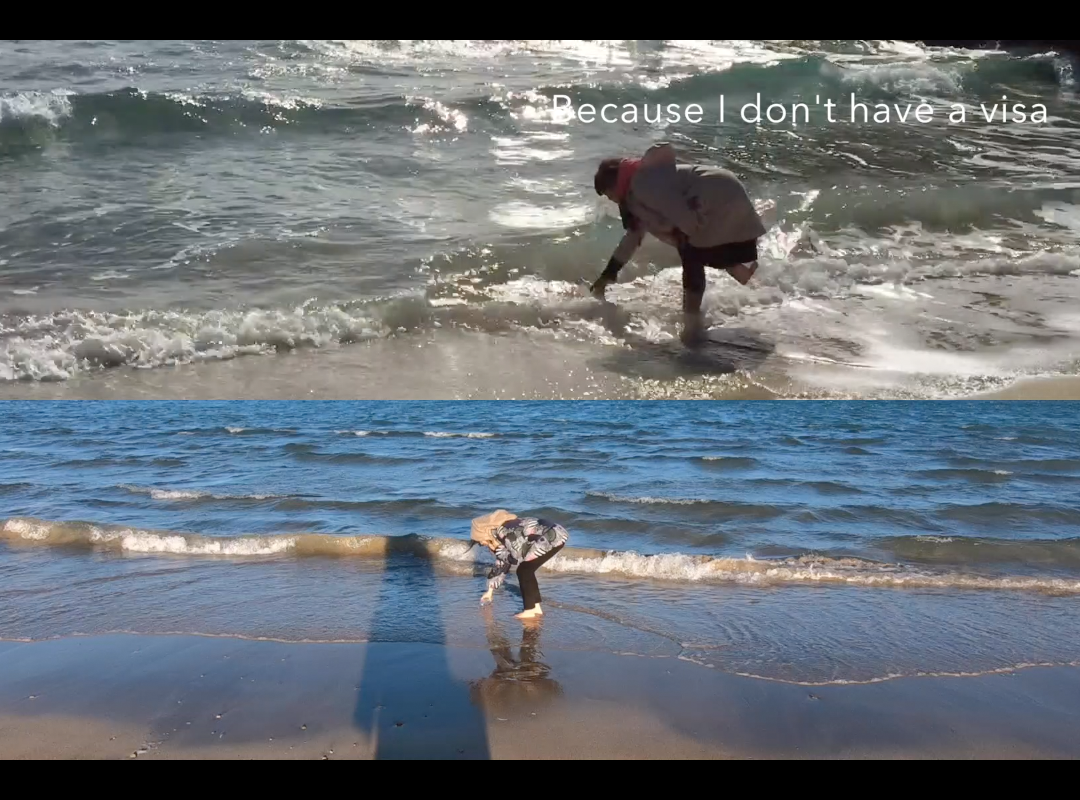 Es ist ein trauriges Meer, das zahlreiche menschliche Überreste enthält. Im Video bin ich an die Ägäis und dem Mittelmeer gegangen, um das Meerwasser zu sammeln. Die Küste ist oft voller Touristen, die scheinbar "Gleichgültigkeit empfinden oder die Geschichten von Tausenden von Menschen, die im Meer gestorben sind, nicht kennen. Die Fluchtgeschichten des Flüchtlings erinnern uns daran, dass dieses Meer eher ein Symbol für ein hohes Sterberisiko als für ein Paradies ist. Das Bild des schönen Meeres bildet einen großen Kontrast zu Abdul's Erzählung und verstärkt die Traurigkeit des Meeres.