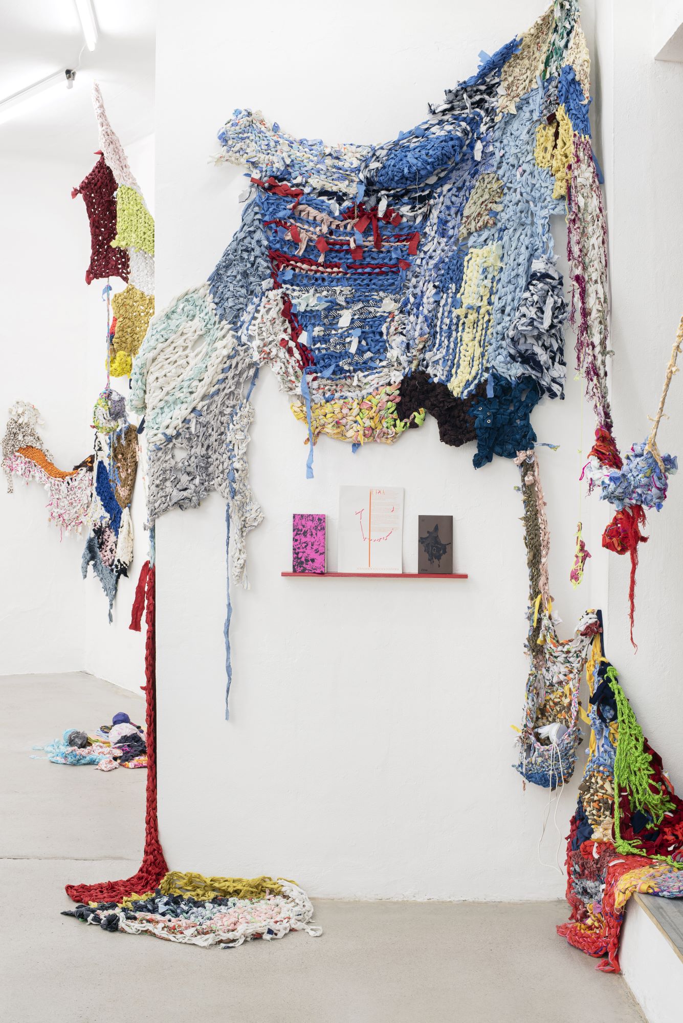 Werke v.L.n.R.: Etna Wucherung, Textil fortlaufend seit 2020 Im Westen wird sie untergehn, 2022