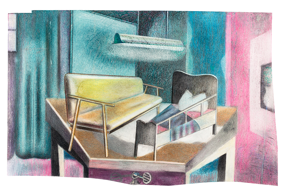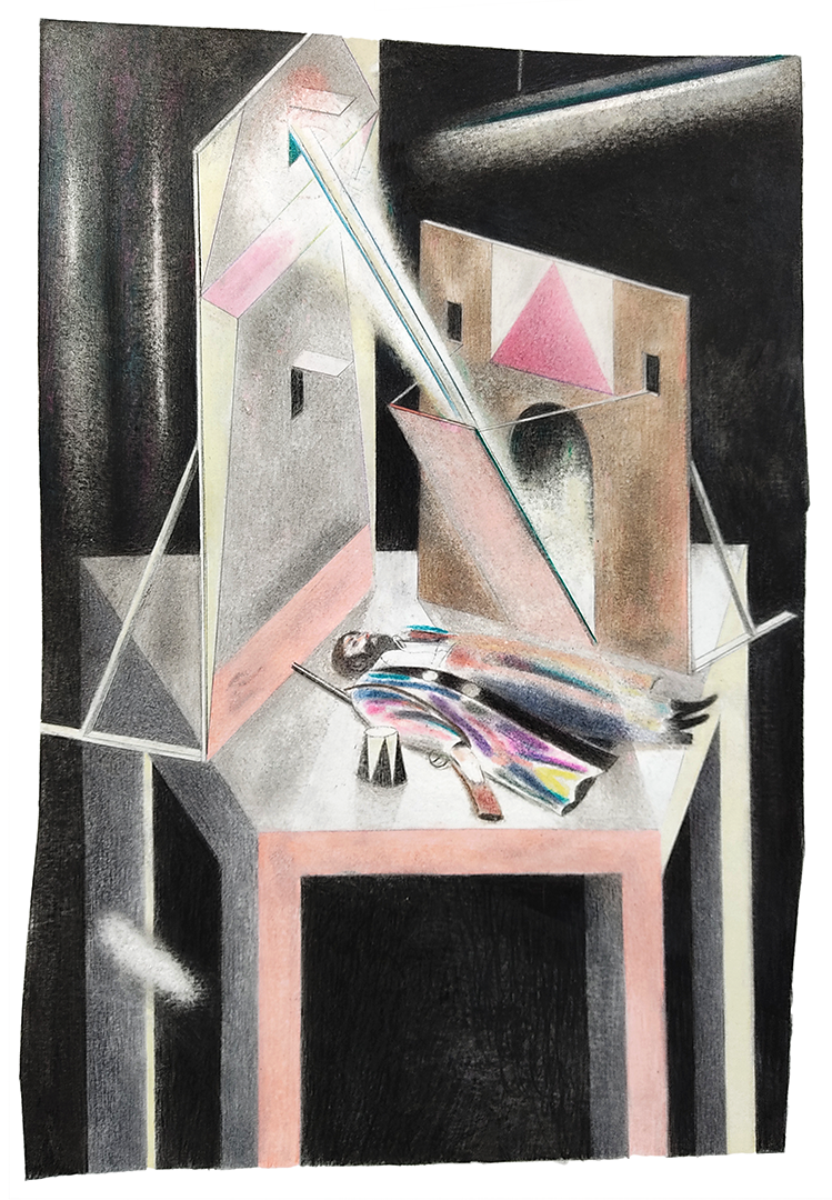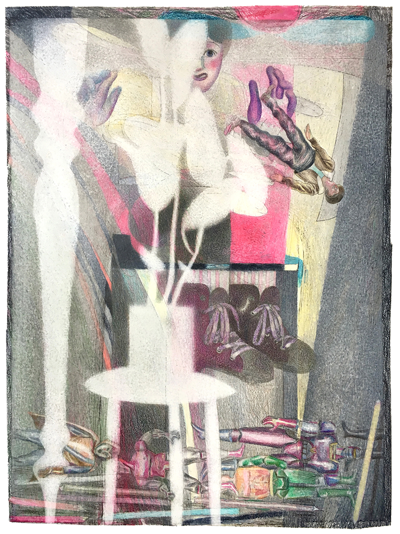 Die Zeichnungen entstehen vor allem aus der Improvisation: Ein Spiel von Aktion und Reaktion zwischen der künstlerischen Entscheidung, ihrer Fehler und deren unvermeidlichen Einfluss auf alle Entscheidungen, die darauf folgen. Jede Skizze ist hinfällig, stattdessen entwickeln sich die Motive vom abstrakten Hintergrund hin zur Miniatur-Bühne und füllen sich nach und nach mit einem kleinen, bewegungslosen Schauspiel. Alldem liegt die Faszination für die gezeichnete Linie und das Papier, das sie trägt zugrunde - ganz gleich ob sie mit erfahrener Präzision konstruiert oder mit geballter Kinderhand hineingerissen wurde.