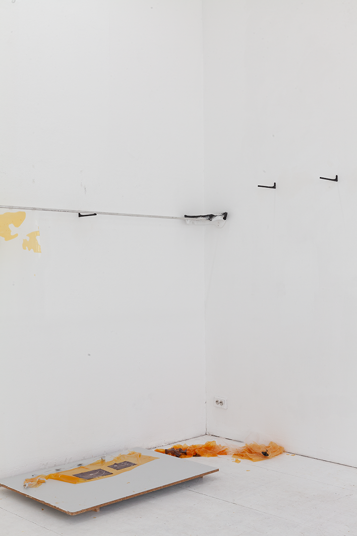 dry end, food dye, 2020, Aluminiumstangen, 3d Drucke, Agar Gelee, Lebensmittelfarbe, Sperrholz, Insektenschutznetz, Fundstück