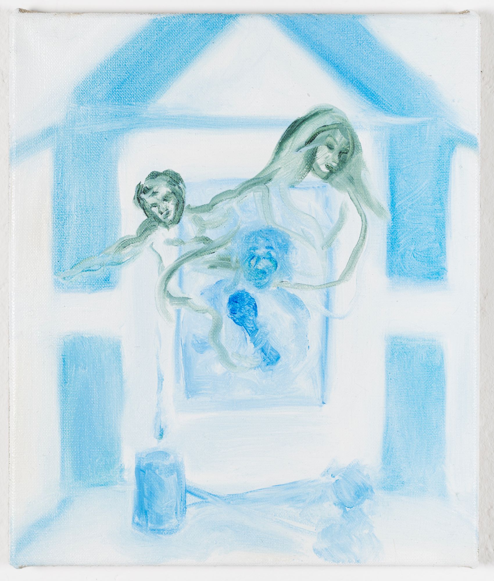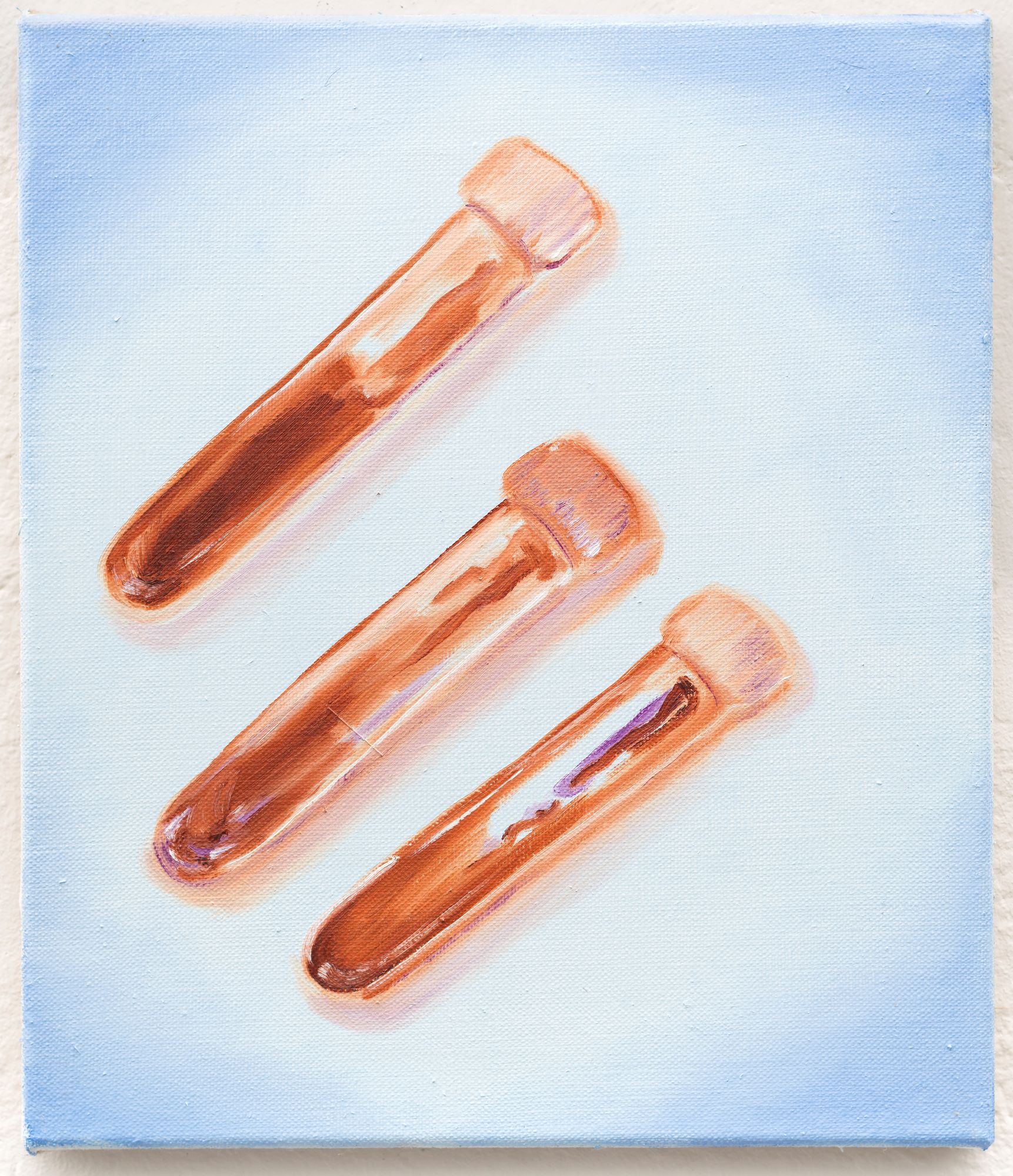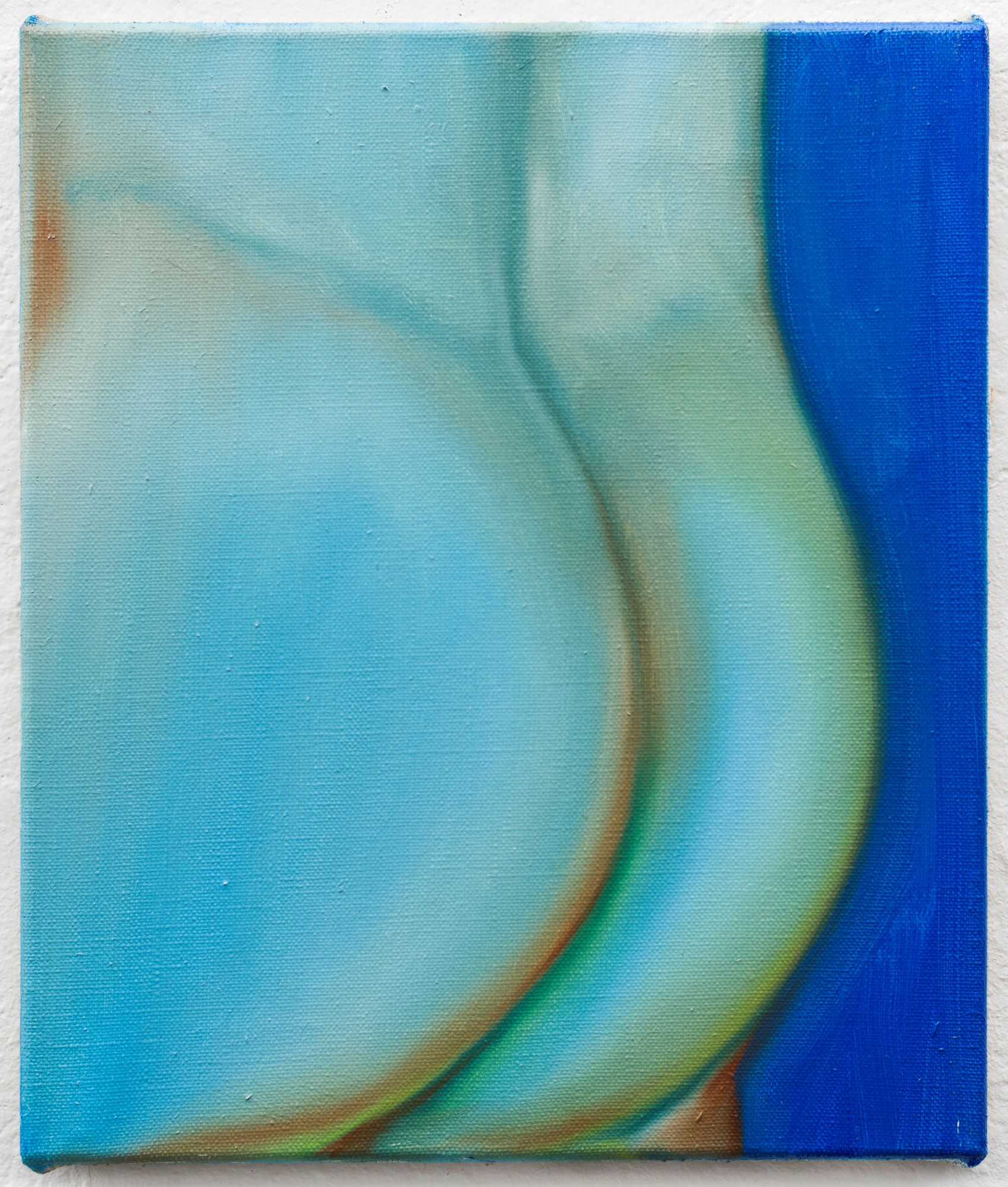 Von hinten durch die Brust ins Auge beschreibt einen unnötig komplizierten Zugangsweg. Zugleich ist es dieser unmögliche Schuss, der präzise den ganzen Körper durchdringt. In einem CT wird dieses Durchdringen plötzlich möglich und leicht. Bilder von Körpern bauen sich Schicht für Schicht auf und ermöglichen Beobachtenden einen voyeuristischen Blick ins Innerste. Der Wunsch, durch die Schichten zu dringen und hinter die Oberfläche zu blicken, entsteht sowohl in der Malerei als auch in der Beziehung zum Objekt der Begierde. Doch weder die Leinwand noch das andere lassen sich komplett durchdringen oder verstehen. In ihrer Arbeit nähert sich Karolina Koßmann Körpern, Objekten und Ideen an, die sich immer wieder verflüchtigen. Wie nah können wir Werken und Sehnsüchten wirklich kommen?