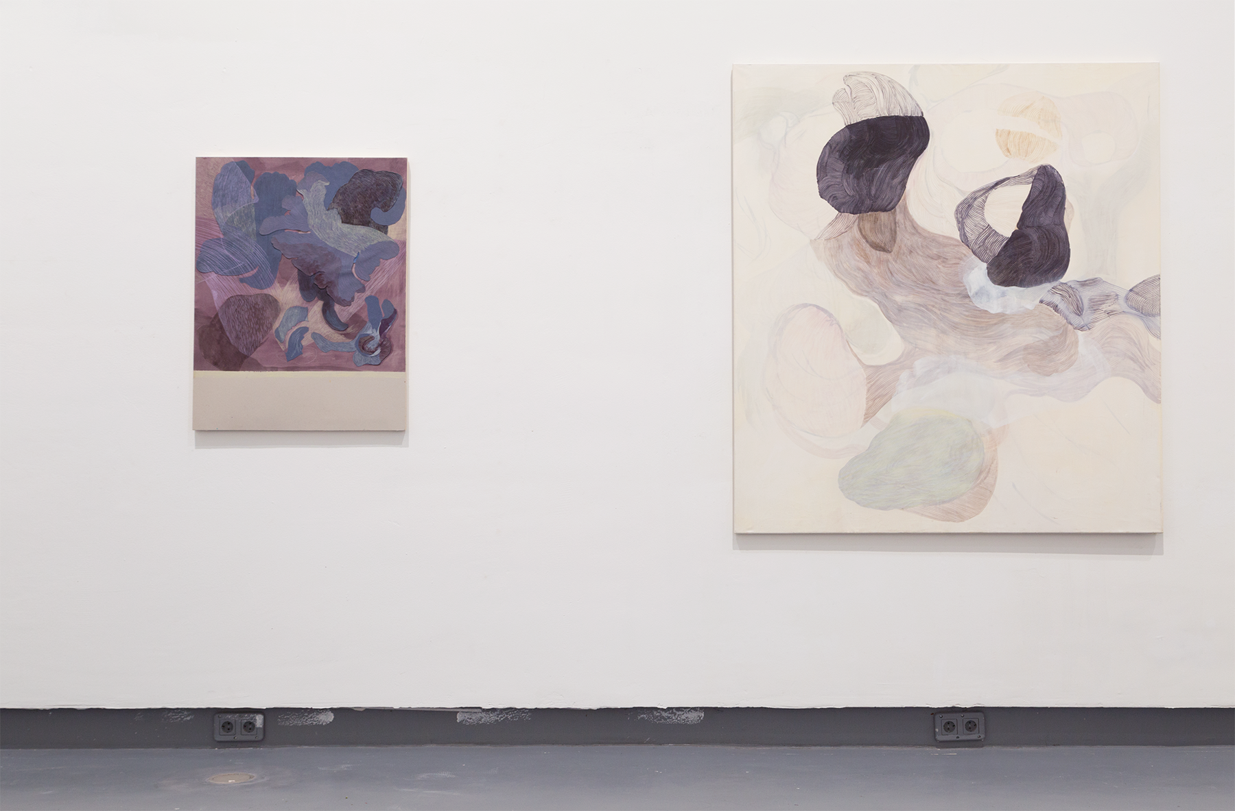 links: 'wappnen' 2021, 80 x 70 cm, rechts:'rosa-schwarz', 2020, 90,5 x 71,5 cm