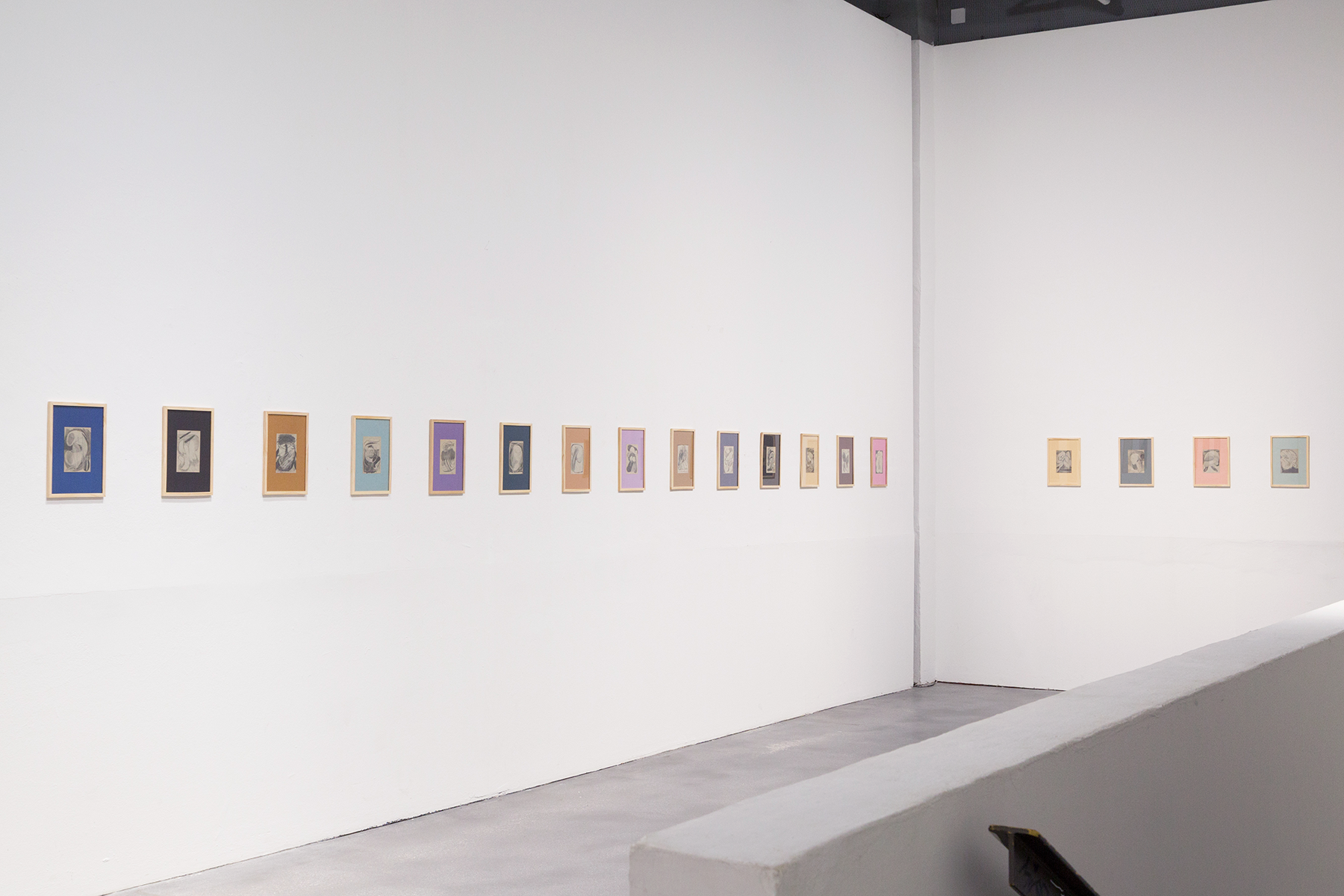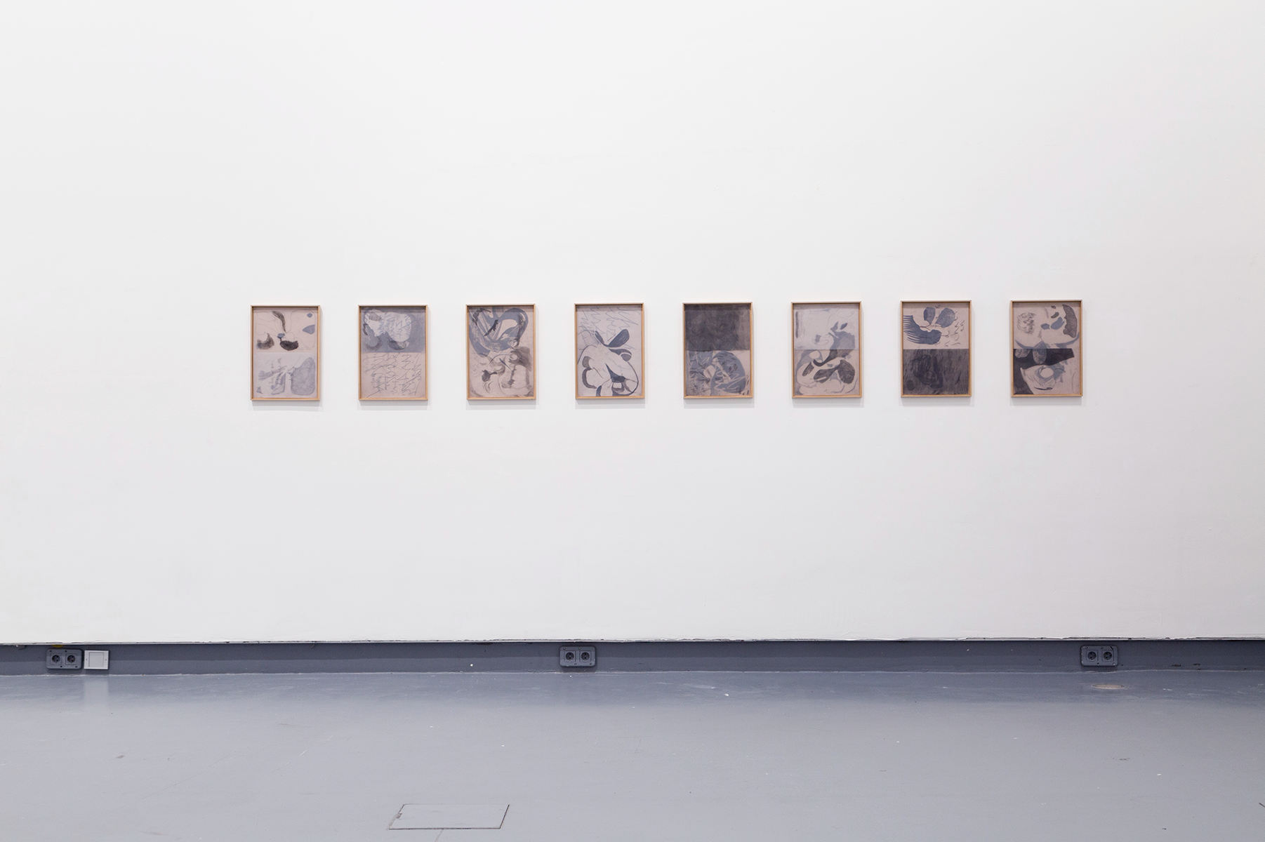 Ausstellungsansicht Serie von 18 Zeichnungen 'o.T', 2021, je 30 x 21 cm