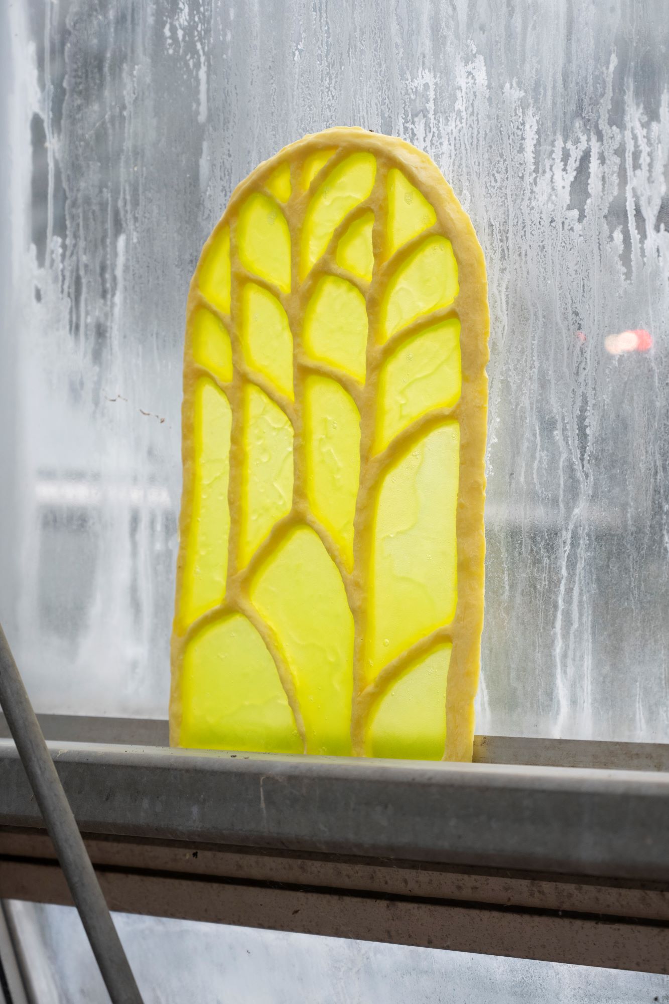 Meine Arbeiten spielen mit den vielfältigen Assoziationen, welche mit Seife verknüpft sind, verweisen aber gleichzeitig durch Form und Materialität auf die Fragilität christlicher Reinheitsvorstellungen. Im Gegensatz zur Kirchenarchitektur sind meine Objekte nicht für lange Zeit gemacht. Sie stehen in ständiger Reaktion mit ihrer Umgebung bis zum Punkt ihrer Auflösung.