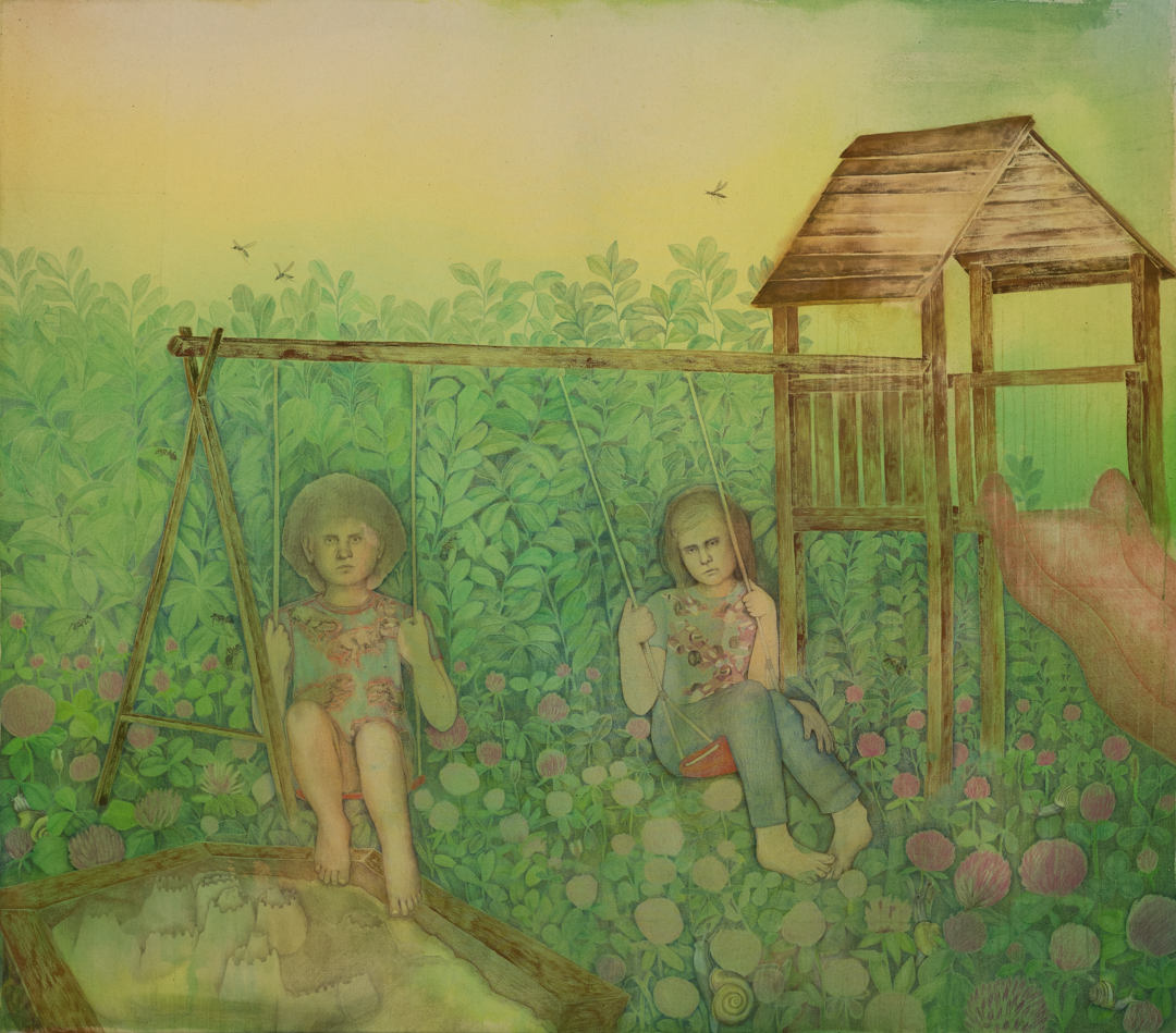In diesen Bildwelten wimmelt es: Insekten schwirren, Igel krabbeln, und ein leiser Moment von Unbehagen zieht sich durch die Szenerie. Hasers formal gegenständliche Arbeiten entziehen sich jeder logischen Ordnung. Verborgene Details verharren still, warten darauf, entdeckt zu werden – Spuren von Präsenz, Fragmente des Selbst.