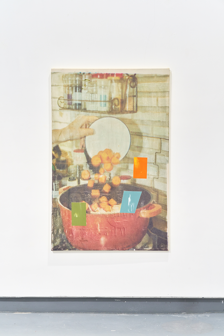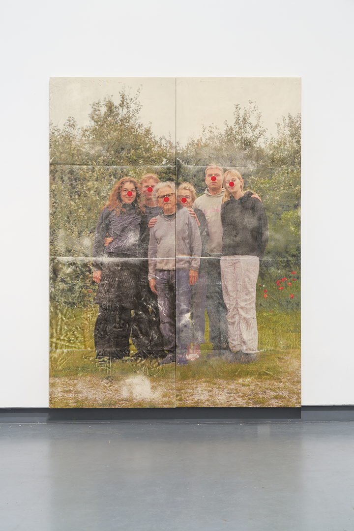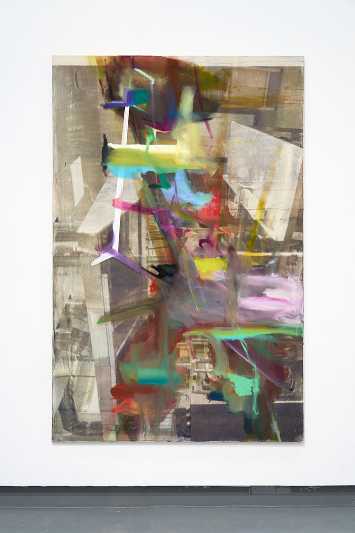 Using a transfer printing technique I developed, I transfer digital photographs onto canvas, where they merge with painterly traces and techniques. In this process, the print itself becomes painting, as its meaning and materiality shift. For me, this transfer is not just a technical means but a painterly act that shapes composition. The background—the transferred photograph—determines and shapes the foreground, creating a starting point beyond the blank canvas.
