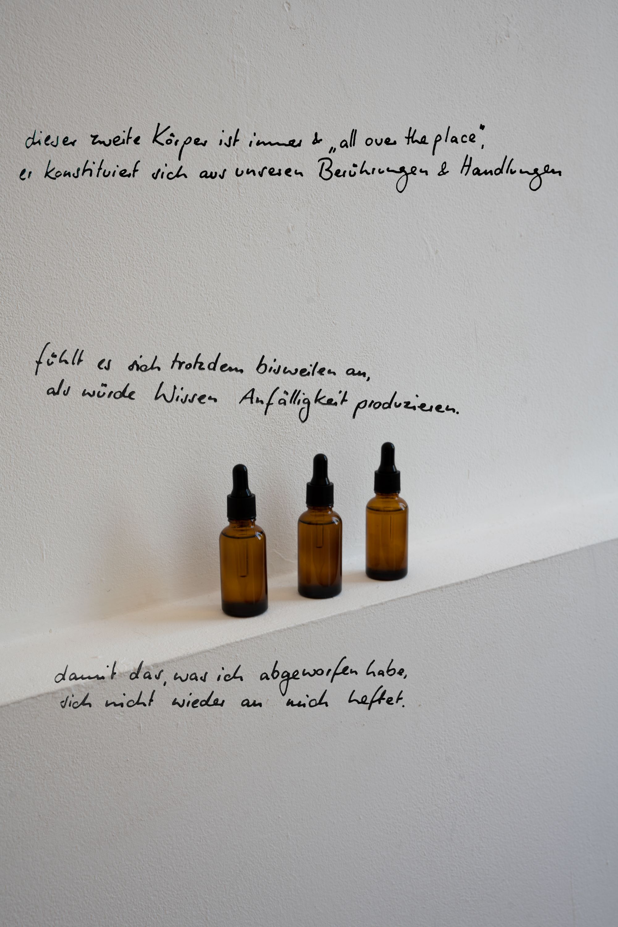 Diese Arbeit will nicht versöhnen. Risse, Knoten und Falten inmitten einer Wucherung aus sorgfältig kuratierten Quellen erzeugen einen Widerstand - Bedrohung und Befreiung zugleich. Verbunden werden auditive Narrative, Autor*innen, Positionen, popkulturelle Geschehnisse, wissenschaftliche Theorien, Erinnerungen und Autobiografien. Momente von Entweder-Oder fragmentieren sich und sollen durch Kombinationen von unerwarteten, multiplen Perspektiven in neue Verhältnisse gesetzt werden.