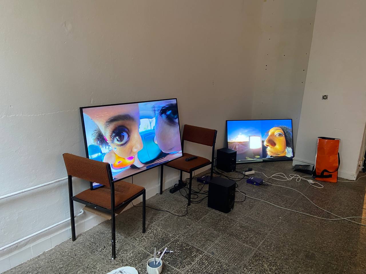 Ich habe in Kooperation mit anderen Künstler*innen ein Sammelsurium an Zitaten der Originalvideos, einiger Medienauftritte der Pop-Sängerinnen und unseren Empfinden aufgebaut und dieses gefilmt. Die Kurzfilme sind mehr wie ein Gesamteindruck ohne Erzählung zu verstehen. Die Arbeit ist in Anlehnung an die Künstlerinnengruppe Erfurt, an deren Schnitte und Filmaufbau ich mich orientiert habe. Die Filme sind mit einer 360° Kamera gedreht. Neben der Prüfung läuft die Ausstellung weiter mit diversen Events, wo andere Künstler*innen nochmal auf die Ausstellung reagieren. ZB musikalisch und performativ und in Form von Dialogangeboten.