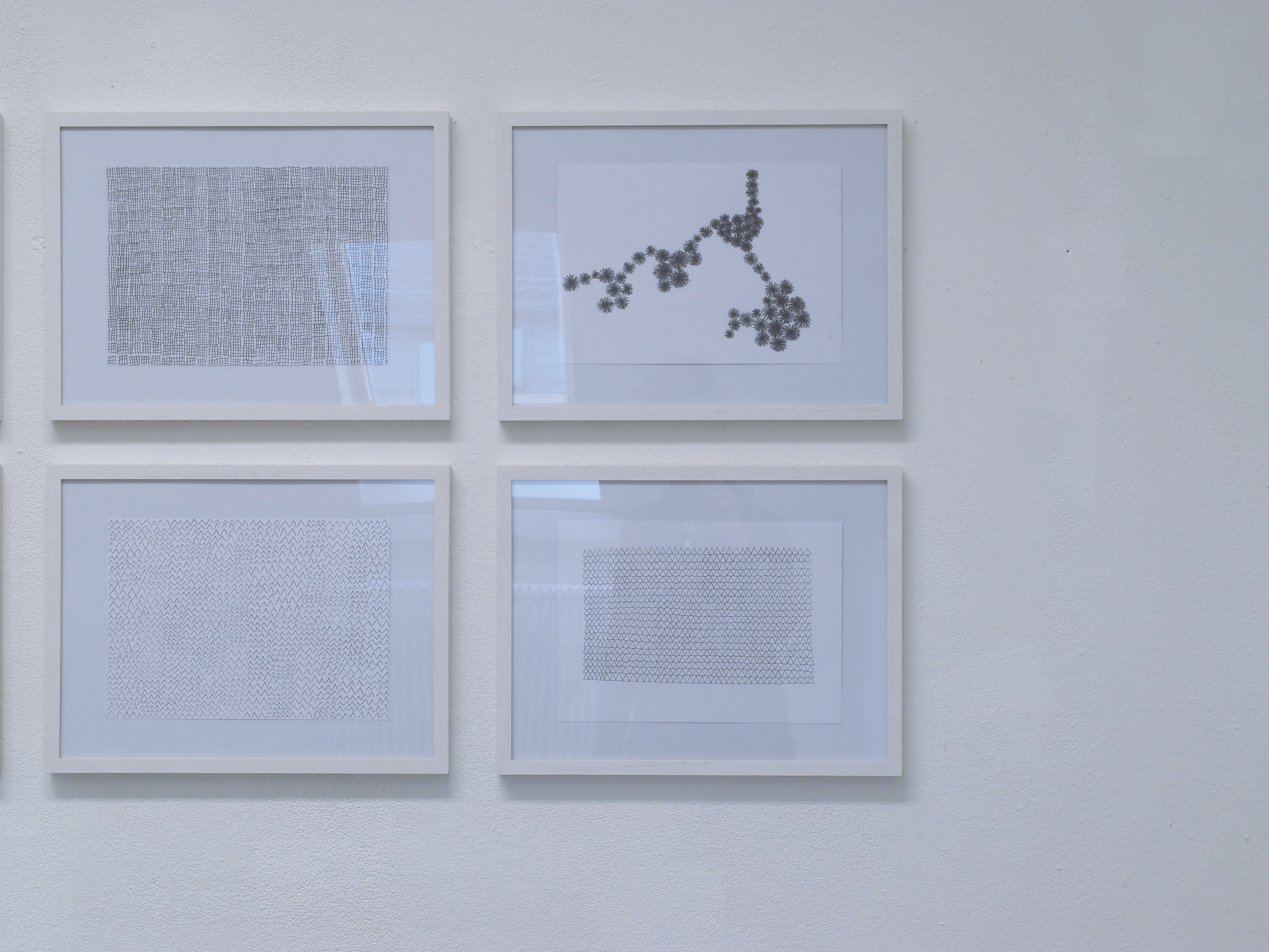 Die Diplomarbeit „Zeichnungen“ besteht aus 29 Zeichnungen. Die Arbeiten sind ohne Titel. Bleistift auf Papier. Sie besteht aus 4 x A4 Hochformat, 16 x A4 Querformat und 9x A3 Querformat. Die Zeichnungen werden in weißen Holzrahmen präsentiert.