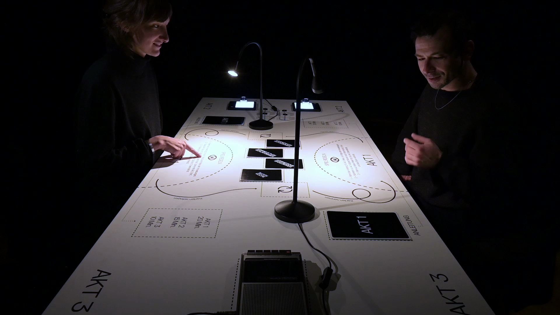 The performance based on the text by Natalia Zaitseva takes place without any actors. It consists of three acts: the first is made of texts, the second of images, and the third of sound.