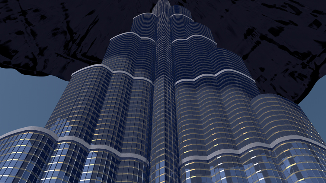 Ein Haus ist dem Menschen gegenüber immer in der Übermacht und kann in der Größenordnung des Burj Khalifa visuell nicht bezwungen werden. Eher noch ist er für das mechanische Auge der Kamera geschaffen, einer Drohne, die ihn umkreisen und von allen Seiten abfahren kann. Verhüllung ist nicht die Lösung dieses Problems sondern eine Fantasie von einem utopischen Kräfteverhältnis, in dem Glas fließt und Architektur weich ist.