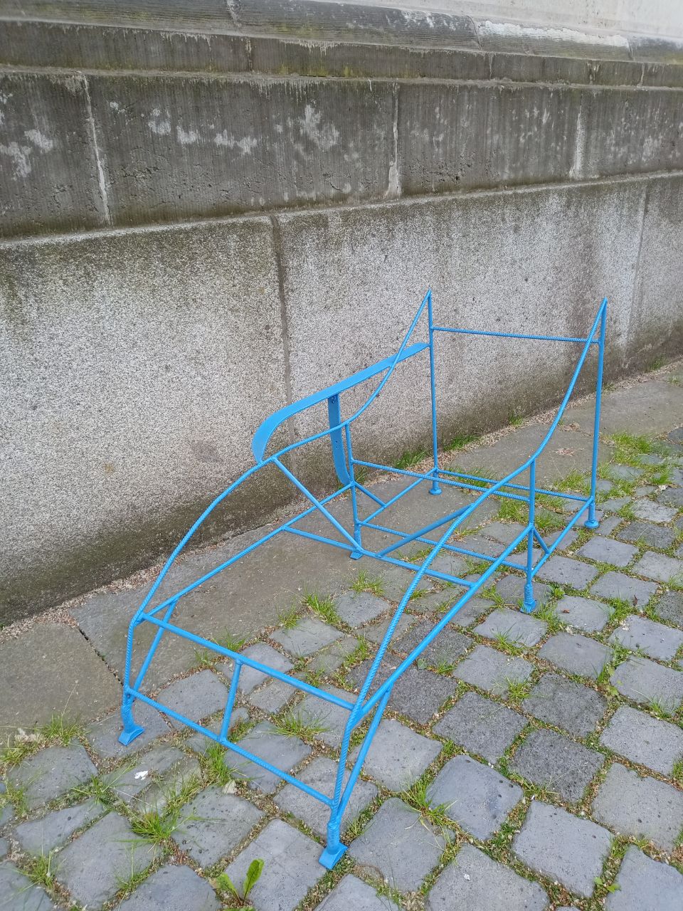 Liegestuhlgestell, aus Schrott geschweißt, Work in progress, 2024