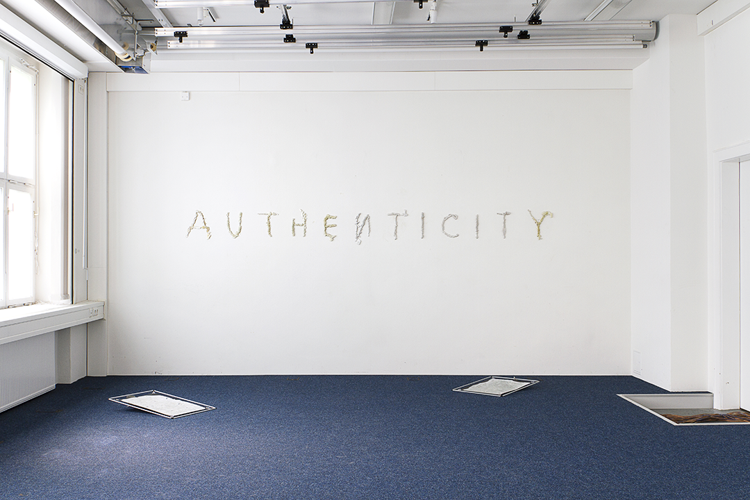 In his graduation show "In a Coded World, There is Nothing Like Normcore", David Rank navigates viewers through an abandoned office space, whose remnants, materiality and enigmatic messages interrupt the continuous flow of time, towards a glitch of temporal and spatial components in which brand messages look like archaeological finds of a time that is already running parallel, is yet to come or cannot take place.