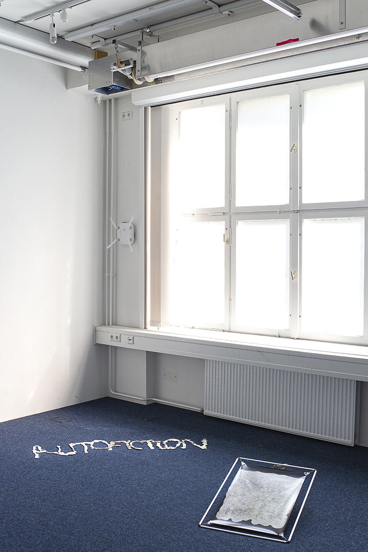 In seiner Graduation Show „In a Coded World, There is Nothing Like Normcore“ navigiert David Rank die Betrachtenden durch einen verlassenen Büroraum, dessen Überbleibsel, Stofflichkeiten und rätselhafte Botschaften den kontinuierlichen Fluss der Zeit unterbrechen, hin zu einem Glitch aus zeitlichen und räumlichen Komponenten, in der Markenbotschaften aussehen wie archäologische Fundstücke einer Zeit, die bereits parallel abläuft, noch eintreten wird oder nicht stattfinden kann.