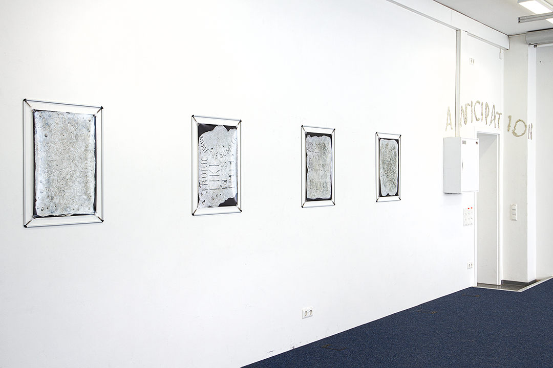 "Can you hear my echo sounding and fading away quietly? There where the vastness disappears in blue distance, I will find you again, my unforgotten bliss! - can be read on Sweating Vessel, the dripping tin vase from the Biedermeier period, which defines the central material of the artworks. Until the 19th century, tin found its main use as a widespread carrier for implements and decorative objects in middle-class households.