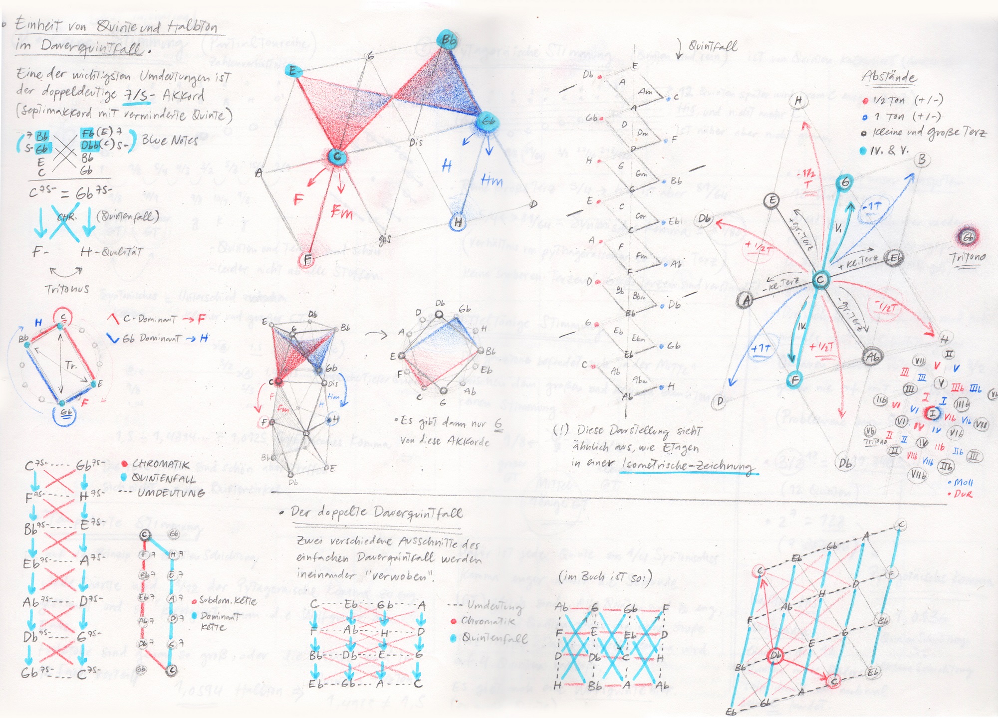 Ein wichtiger Aspekt dieser Arbeit findet sich in der strukturellen Ebene. Die Art und Weise, wie Tonleitern und Akkorde konstruiert, artikuliert und miteinander in Wechselwirkung gebracht werden, ist eng mit den mathematisch-geometrischen Beziehungen verbunden, die die Natur bestimmen, aber auch mit den klassischen Ideen der Harmonie und der Schönheit, die von ihnen ausgehen. Musik als Sprache hat eine grammatische Struktur, die sich räumlich und geometrisch ausdrücken lässt. Musiker nutzen diese Beziehungsstrukturen beim Komponieren, Interpretieren oder Improvisieren. Was aber ermöglicht es Musikern aus unterschiedlichen Kulturen, beim Musizieren effektiv zu kommunizieren? Sind diese musikalischen Strukturen das Produkt von Mensch und Kultur oder gehören sie zu etwas, das über unser Wissen hinausgeht? Wenn wir einerseits an diese Strukturen als Spielregeln denken und andererseits den persönlichen Geschmack, die Sensibilität und die kommunikative Intention betrachten, wie externe Variablen in einem Algorithmus, der beim Musizieren vorhanden ist, so können wir versuchen, auf spielerische Weise die Grundlagen der Musik- und Musiktheorie zu verstehen.