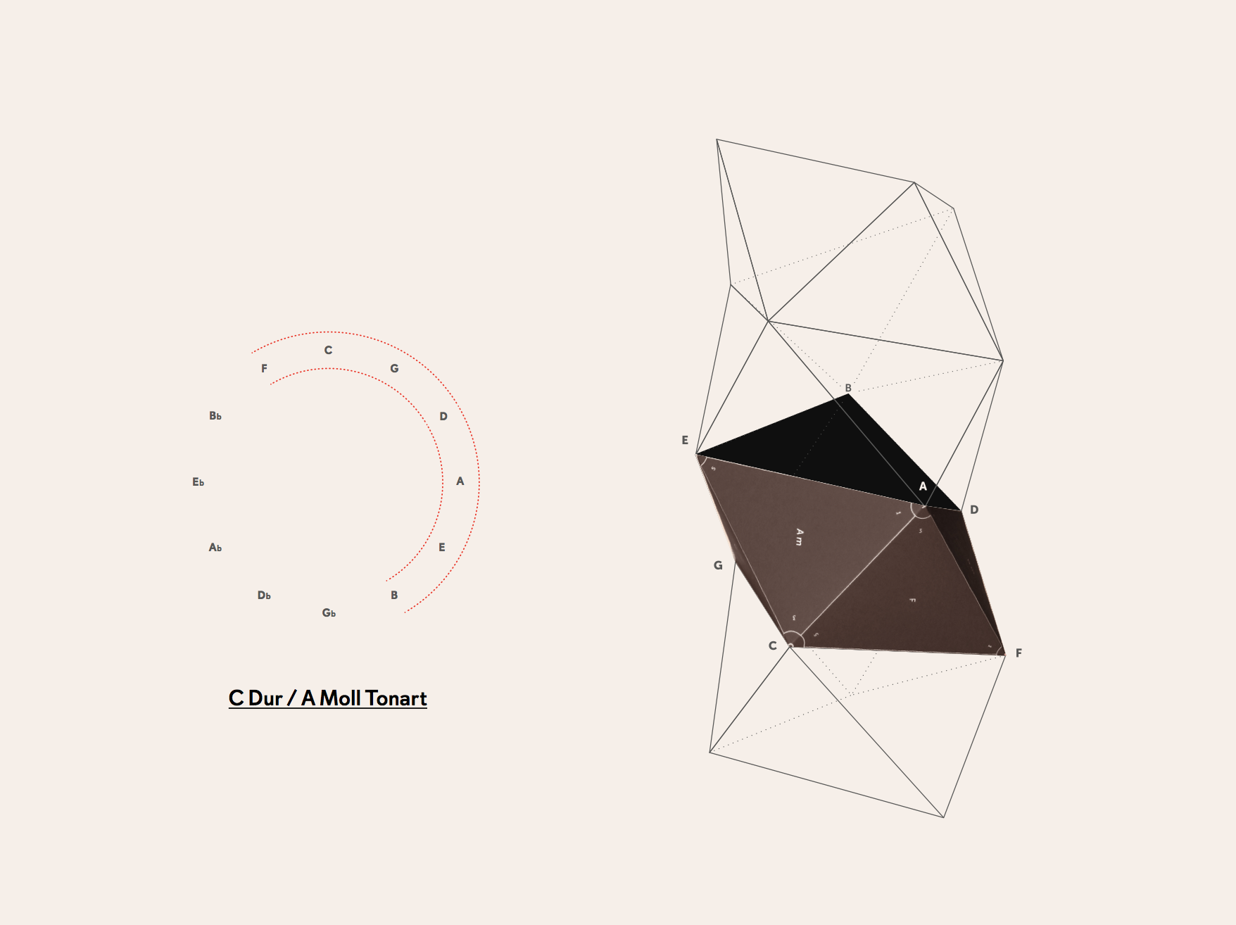 Geometrisches System der Visualisierung von harmonischen musikalischen Beziehungen