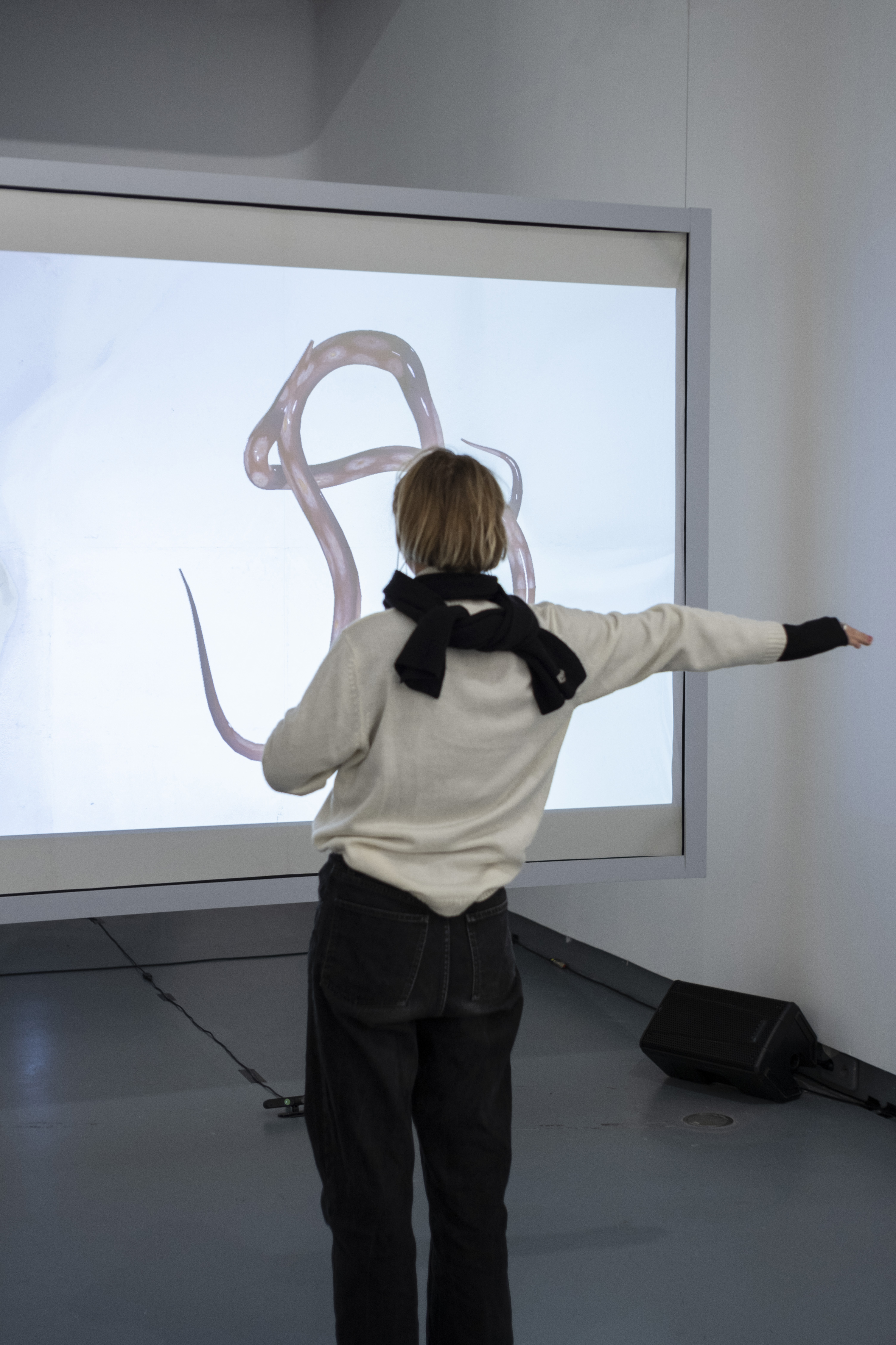 "bodies performing alphabet (2/2)", interactive video installation, 5 min, 2023