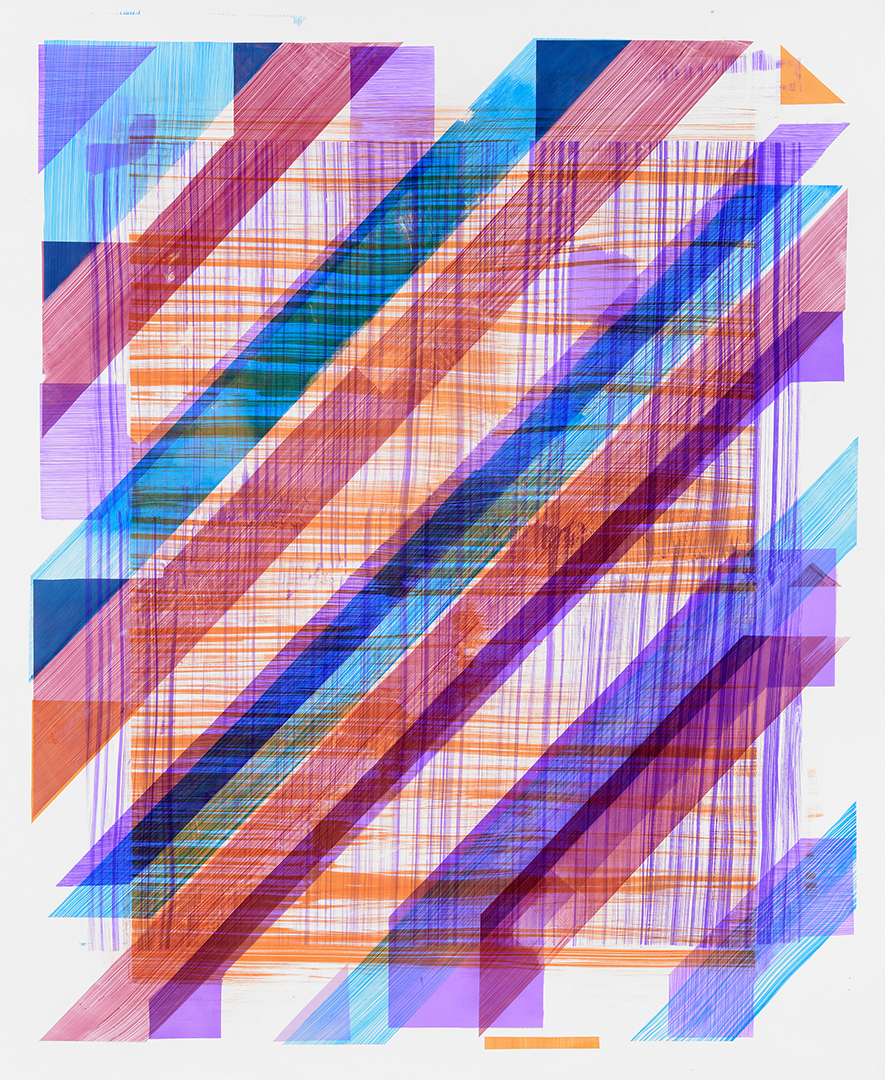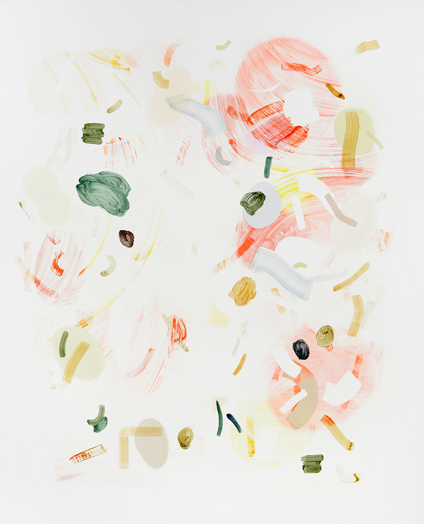 Das heißt, dass die Farbsetzung dem Bildgegenstand oder Motiv nicht untergeordnet wird, sondern aus dem Setzen der Farbe – aus dem Malvorgang heraus – das Bild entsteht. In der Auseinandersetzung mit Geste, Farbe sowie Linie, Fläche und Raum werden die essentiellen Potentiale von Malerei untersucht. Hierbei arbeite ich nach einer Vorgehensweise, die einem "Rückwärtsmalen" gleichkommt. Auf dieser Grundlage wird die Chronologie des Machens, die Bildentstehung als zeitliche Abfolge, in eine visuelle Raumerfahrung überführt. Das Maskieren der Gesten stellt darüberhinaus aber auch eine Distanznahme dar, die auf die kunsthistorisch männlich konnotierte Geste und deren heroischer Bedeutung in der Malerei Bezug nimmt. Sie verweist damit auf einen Diskurs, der einen kritischen Blick auf problematische Rollenbilder und strukturelle Probleme wirft, die einer bestimmten Form von Repräsentationsmacht zugrunde liegen.