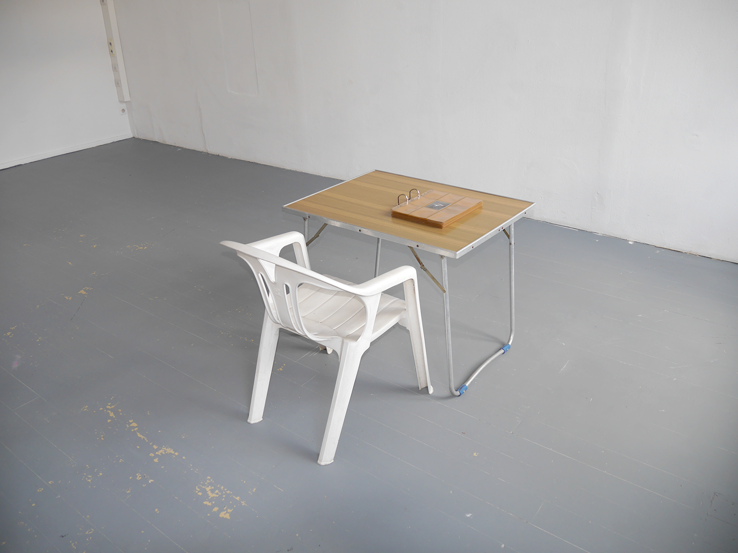 Foldable camping table made in GDR, Ultimate Guard 18-pocket pages, mobile phone pictures from 2019 to 2022 (fine art print), folder-clip, screws, garden chair