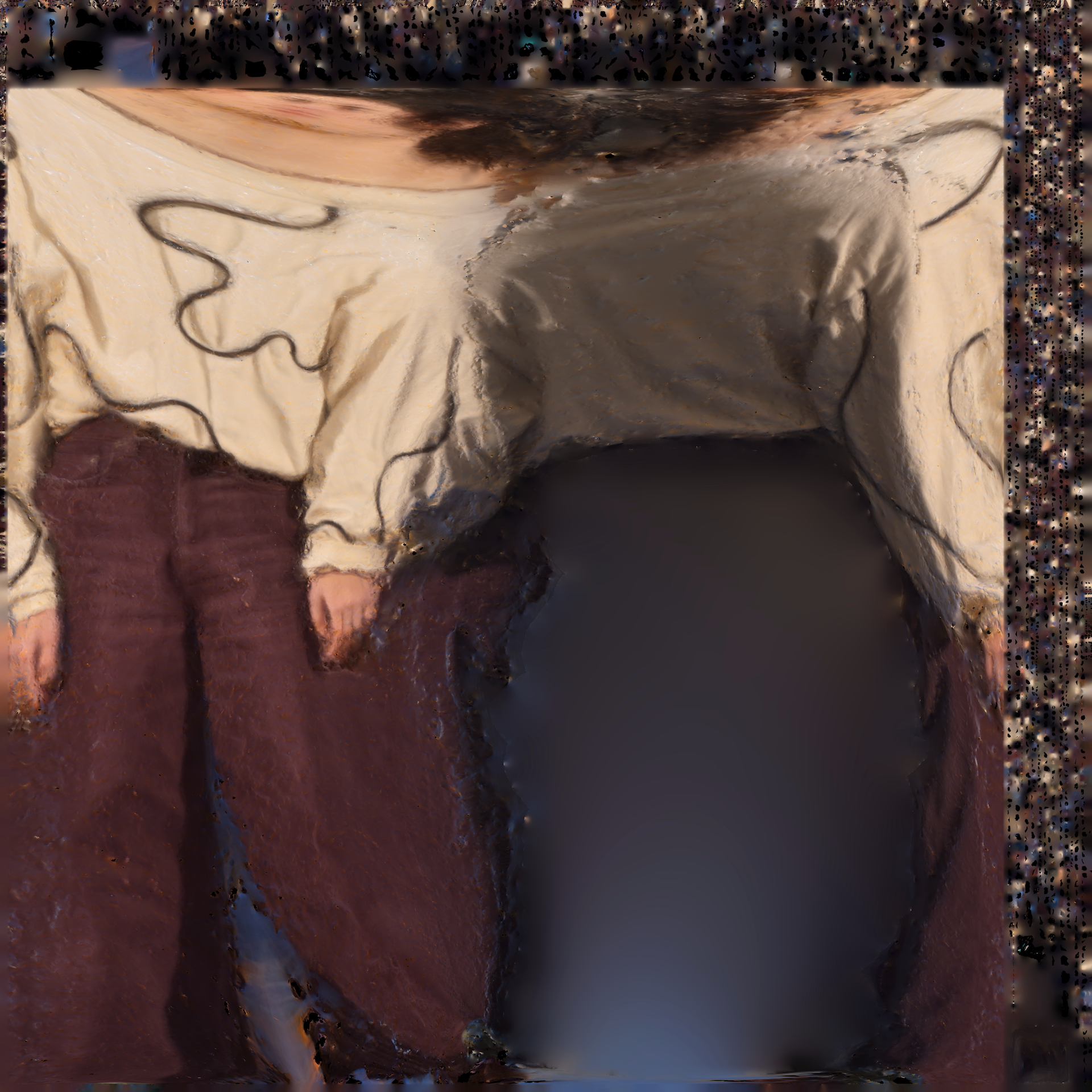 In my current work, I focus, to put it briefly, on the surface that makes us who we are. How much core can be shell? In the square 57 x 57 inch front to back, large and small is fractured and distorted and thus results in a new interpretation of the true and has in the complexity of the composition surreal references. The associations with medieval painting and 20th-century surrealism are intended.