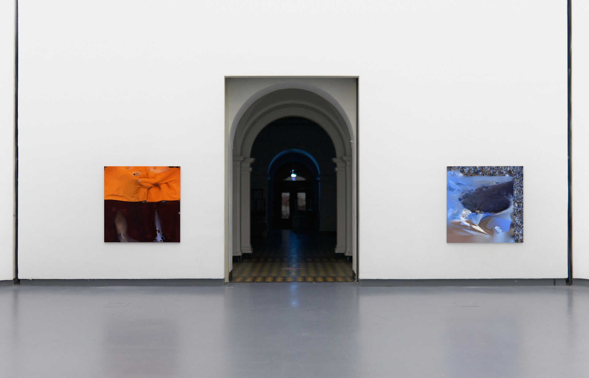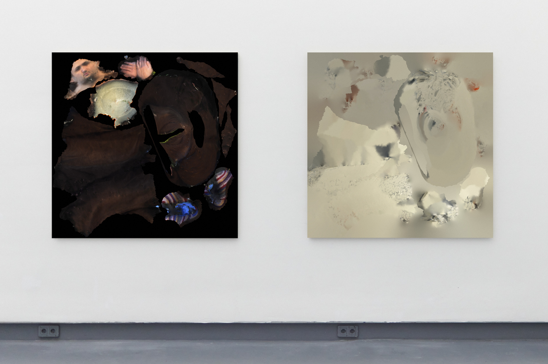 Und dass wir einst ungeteilte Ganze waren (Ausstellungsansicht), Digitales Tafelbild, Inkjetprint, 145 x 145 cm, HGB Galerie, 2021