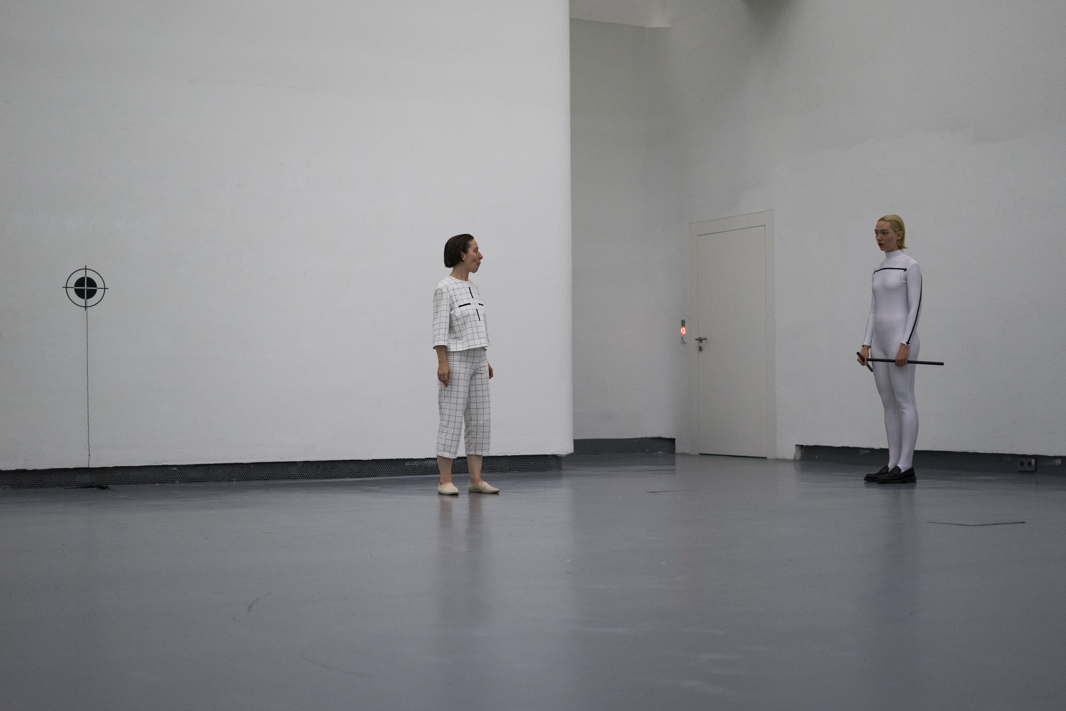 In this working environment, she considers us tools as her fixed ensemble, which have been occupied in the creative process and their function given there in a twenty-minute performance that determines the action.
