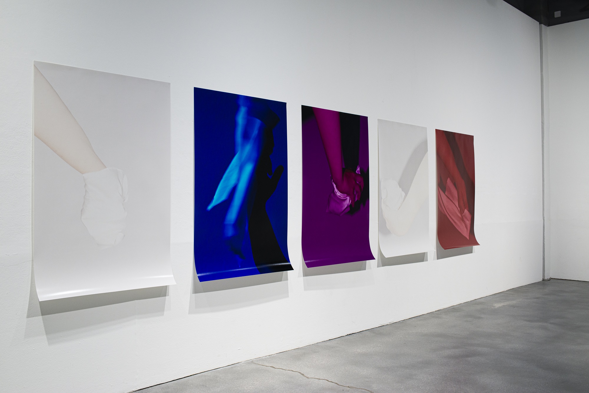 Livia bespielt die Wände des Raums wie ein fotografisches Tanztheater. Ihre Ausstellung fungiert als selbstständiger, rhythmischer Körper. Pulsierend durch die Bewegungen der Protagonist*innen, die sich zu etwas Kollektivem verbinden wollen, tanzend im Rhythmus der verschiedenen Format- und Farbwelten der unterschiedlichen Werke. Große Prints treten in ihrer Komposition fragil, aber befreit neben kleineren auf. Im Backstage-Bereich zeigt sich etwas Neues, ein Einblick in ihr nächstes Projekt über „Queer-Tango“. Jedes Bild ist in sich zugleich leise und laut, folgt einer unhörbaren Musik, die visuell doch greifbar wird. Dabei zeigt sich das Bild selbst lebendig, hebt sich von der Wand ab und ent-täuscht dabei unsere Wahrnehmung. Die dem Medium eigene Zweidimensionalität löst sich scheinbar auf. Analoge Fotografien gehen dabei ein Wechselspiel aus Farbe und schwarz-weiß, starkem Kontrast und sanfter Weichheit ein. Diese Wechselwirkung zu entdecken, meint dabei auch den Austausch, das Gemeinsame und die fassbaren Grenzen zu entschlüsseln. Denkbarkeiten, die auch im Zwischenmenschlichen zu finden sind.