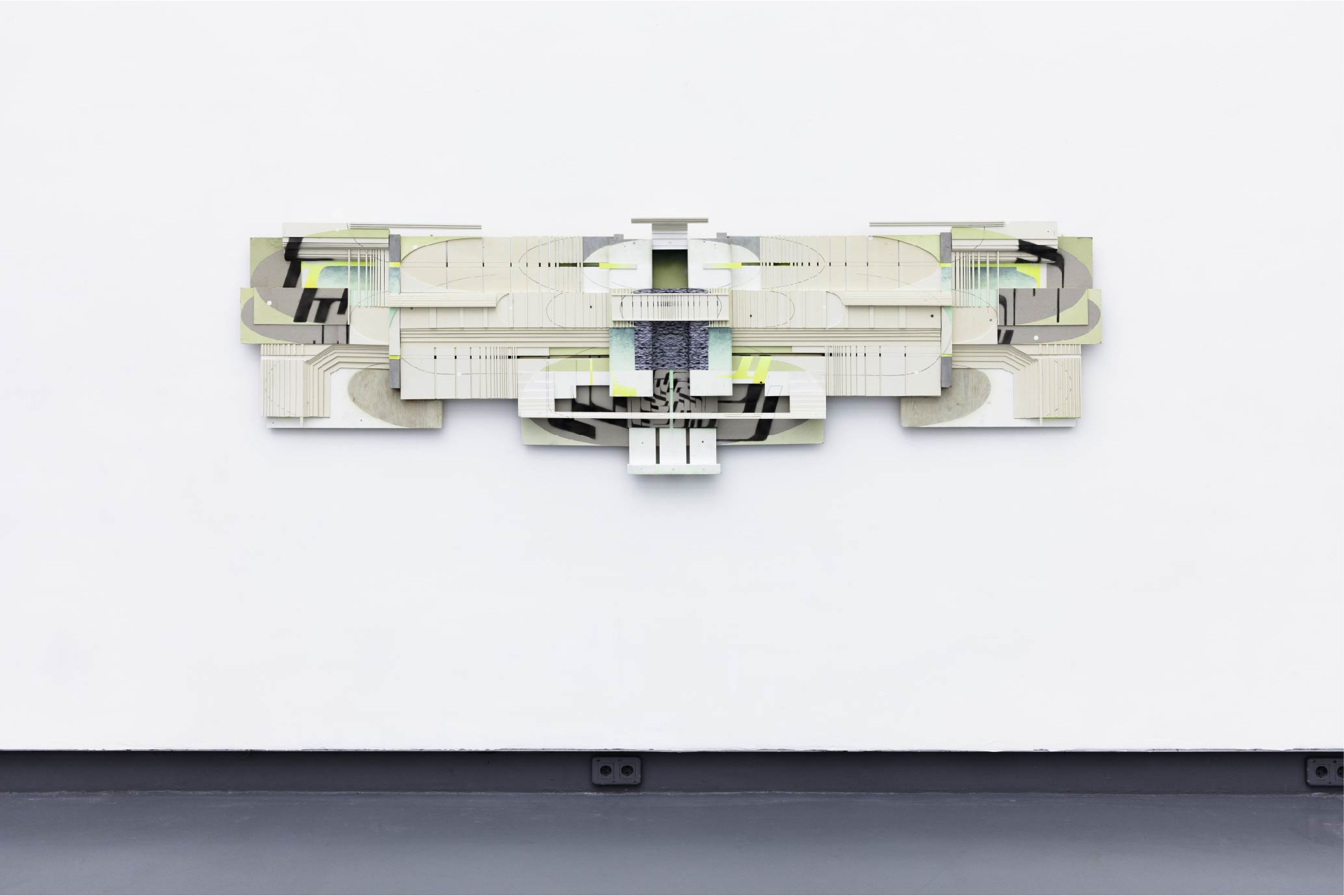 If one accepts the assertion that "pictures have an aura," then one must speak of Marco-Robin Hopf Okamoto's works as asserting an aura. Hopf-Okamoto assembles a symmetrical body from Finnish cardboard and wooden parts, which is subsequently reworked with pen, brush and spray bottle.