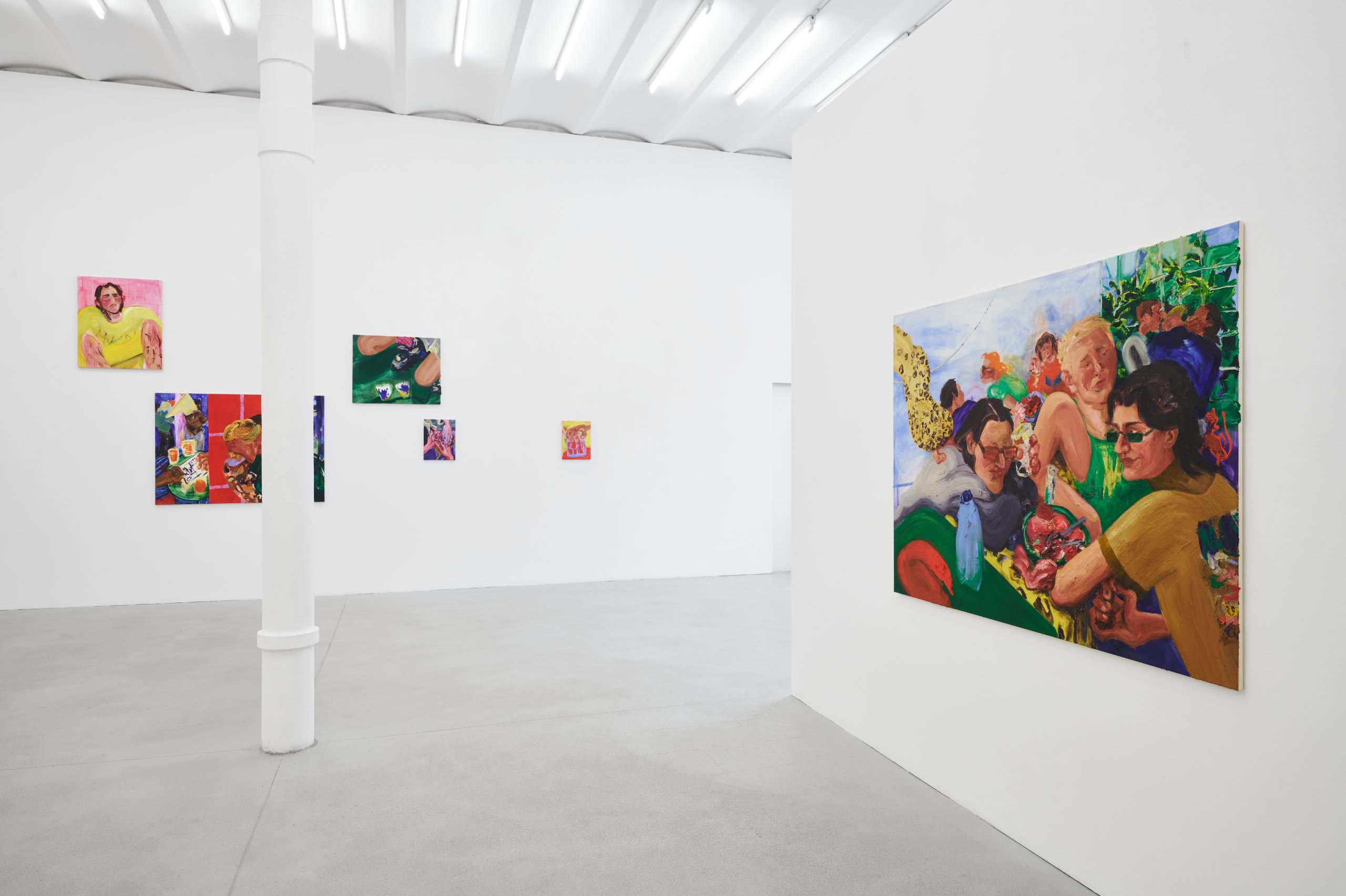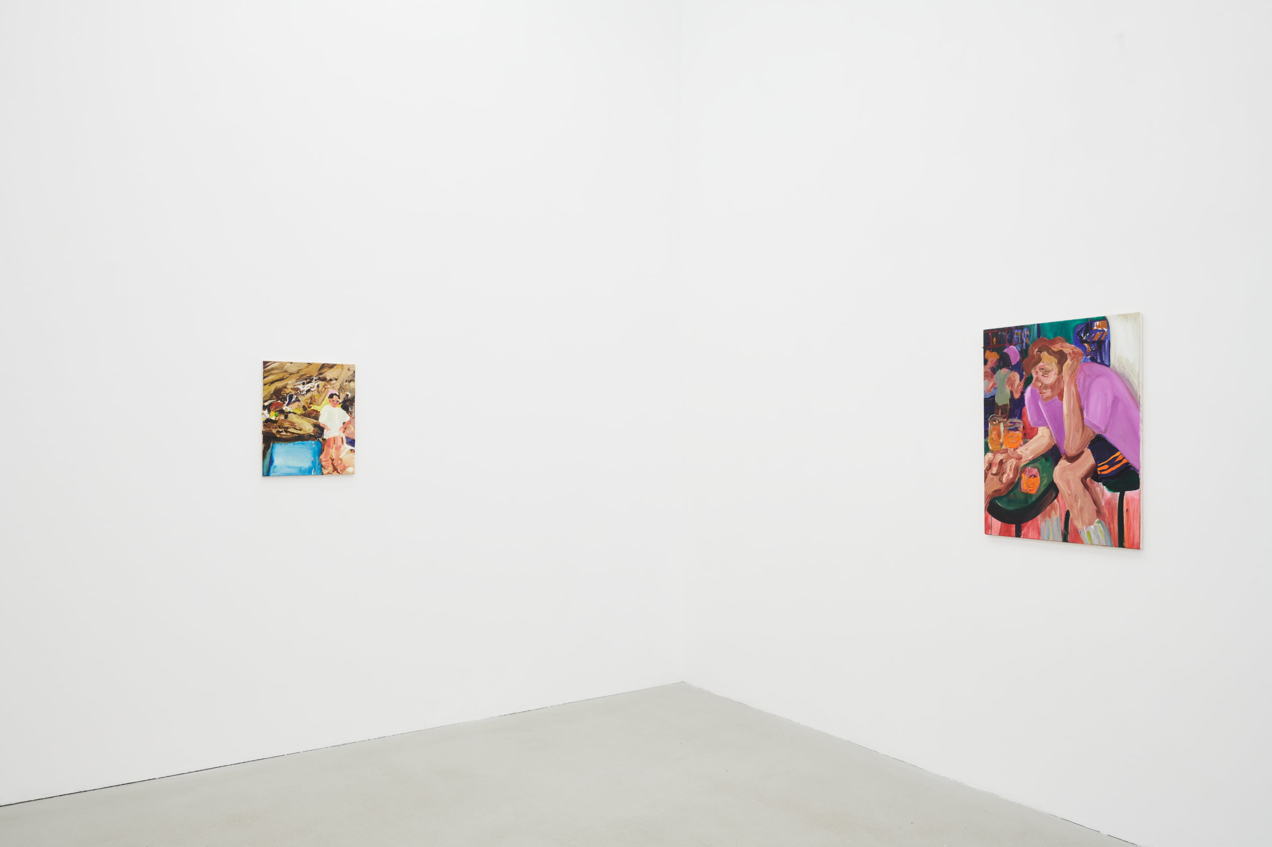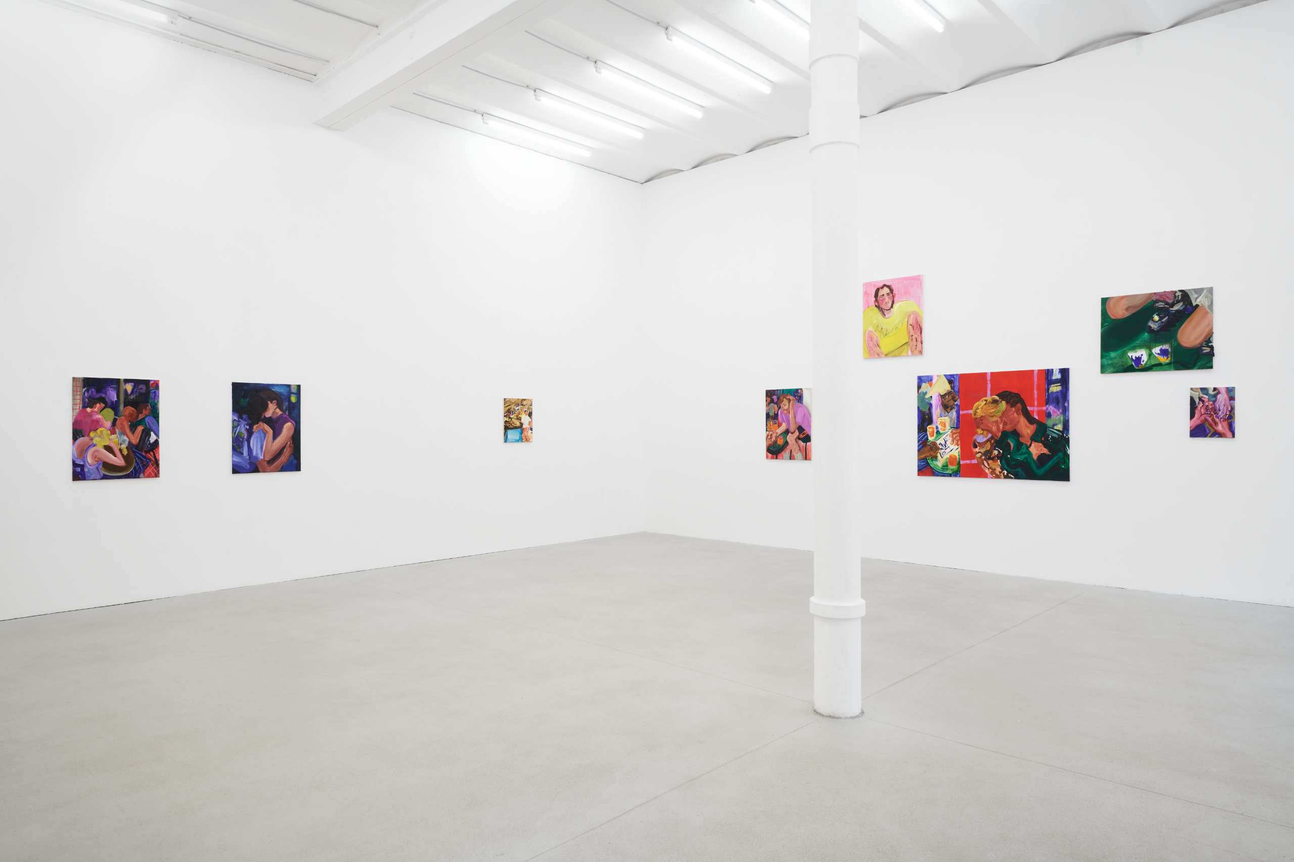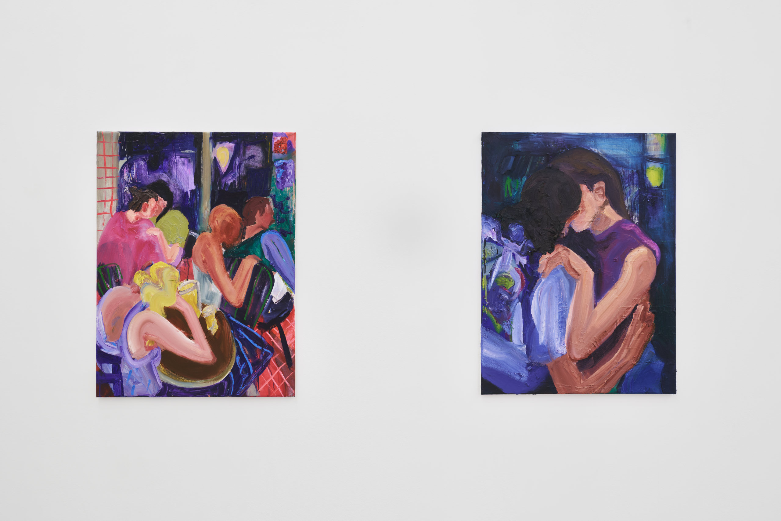 Franziska Koch's works are gestural, direct and trigger immediate emotions; the ambivalence between impasto and translucent layers not only sets pictorial accents on the canvas that stimulate the narrative, but also blurs binary gender boundaries. The focus is on the (purely) interpersonal moment, which deals with themes of closeness, alienation and social constellations.
