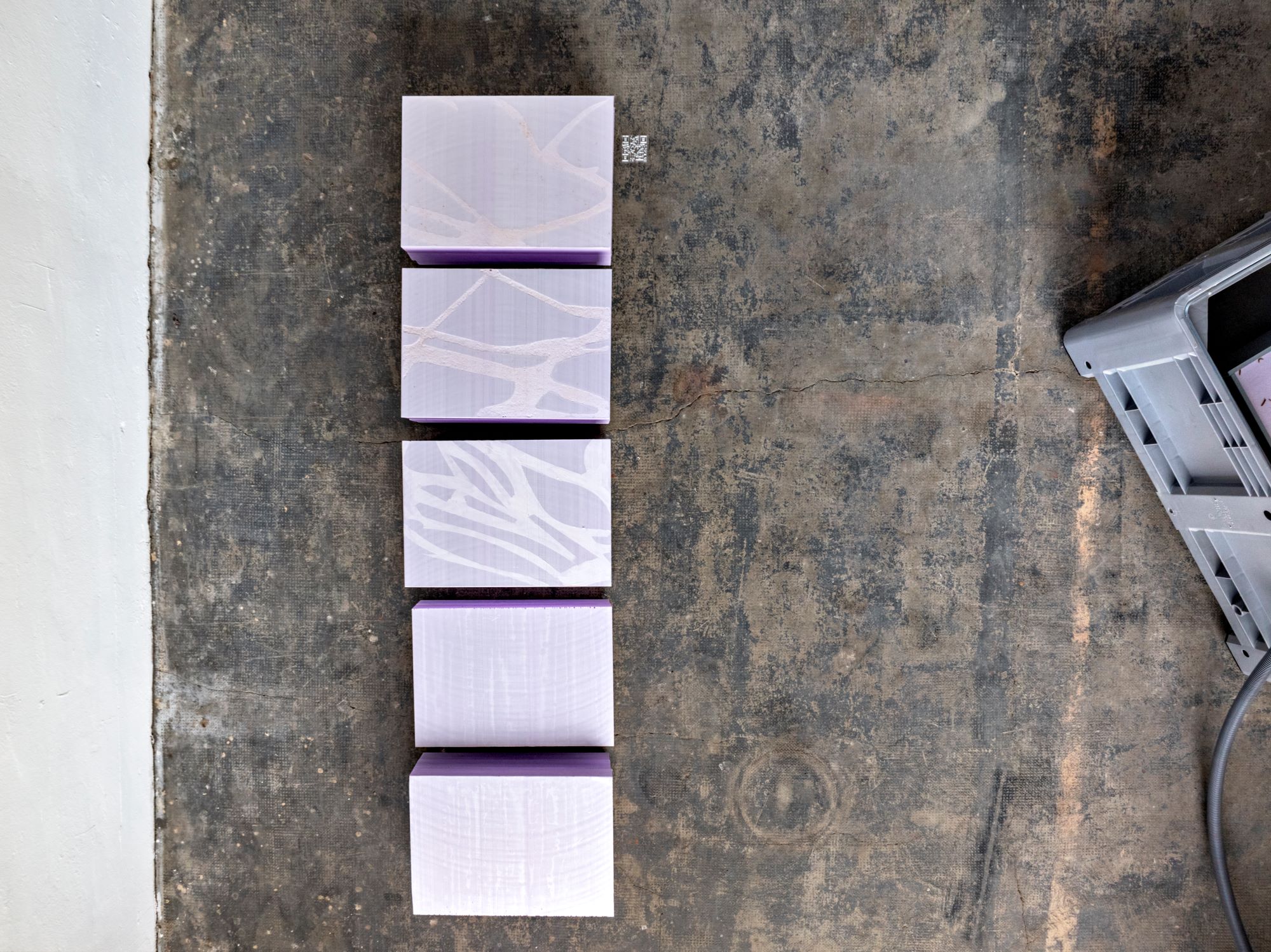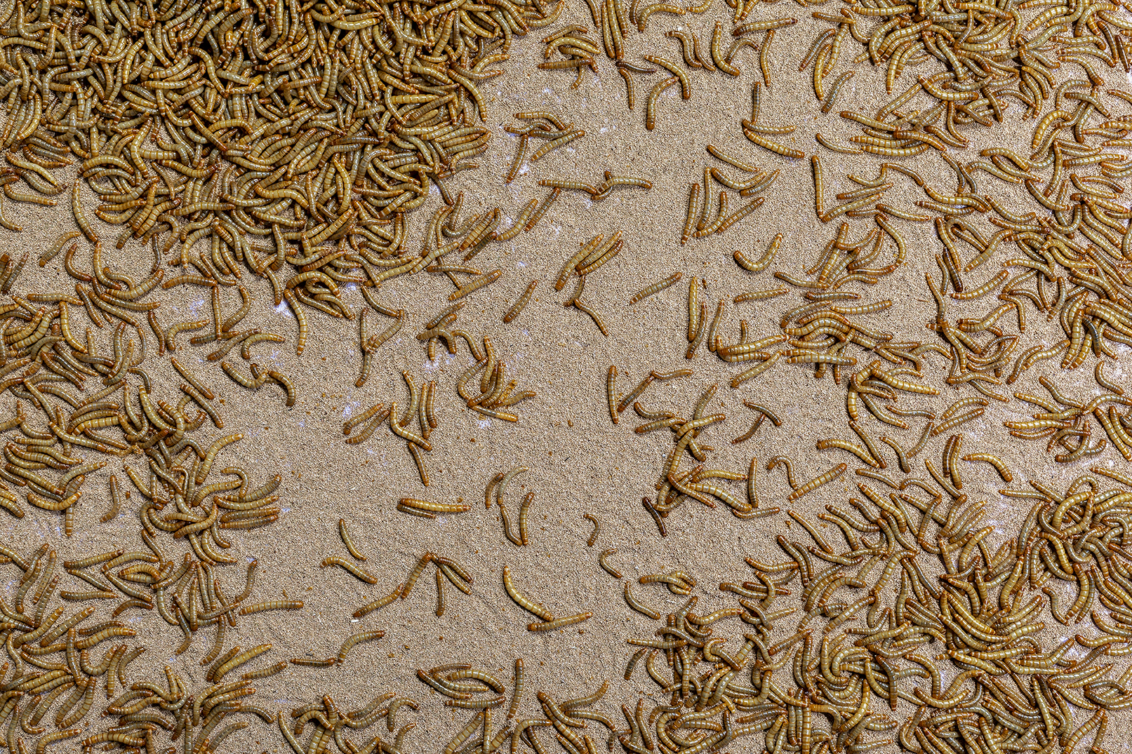 The exhibition Why does the sun go on shining? Why do birds go on singing? Because they know it isn’t the end of the world. offers insights into the HYBRIS research initiative by Yana Zschiedrich, where mealworms play a central role as key agents in experimental material research. The focus is on the transformation of expanded polystyrene (EPS)—a ubiquitous waste product of our time—by mealworms, which convert this industrial residue into a new, sustainable material cycle.