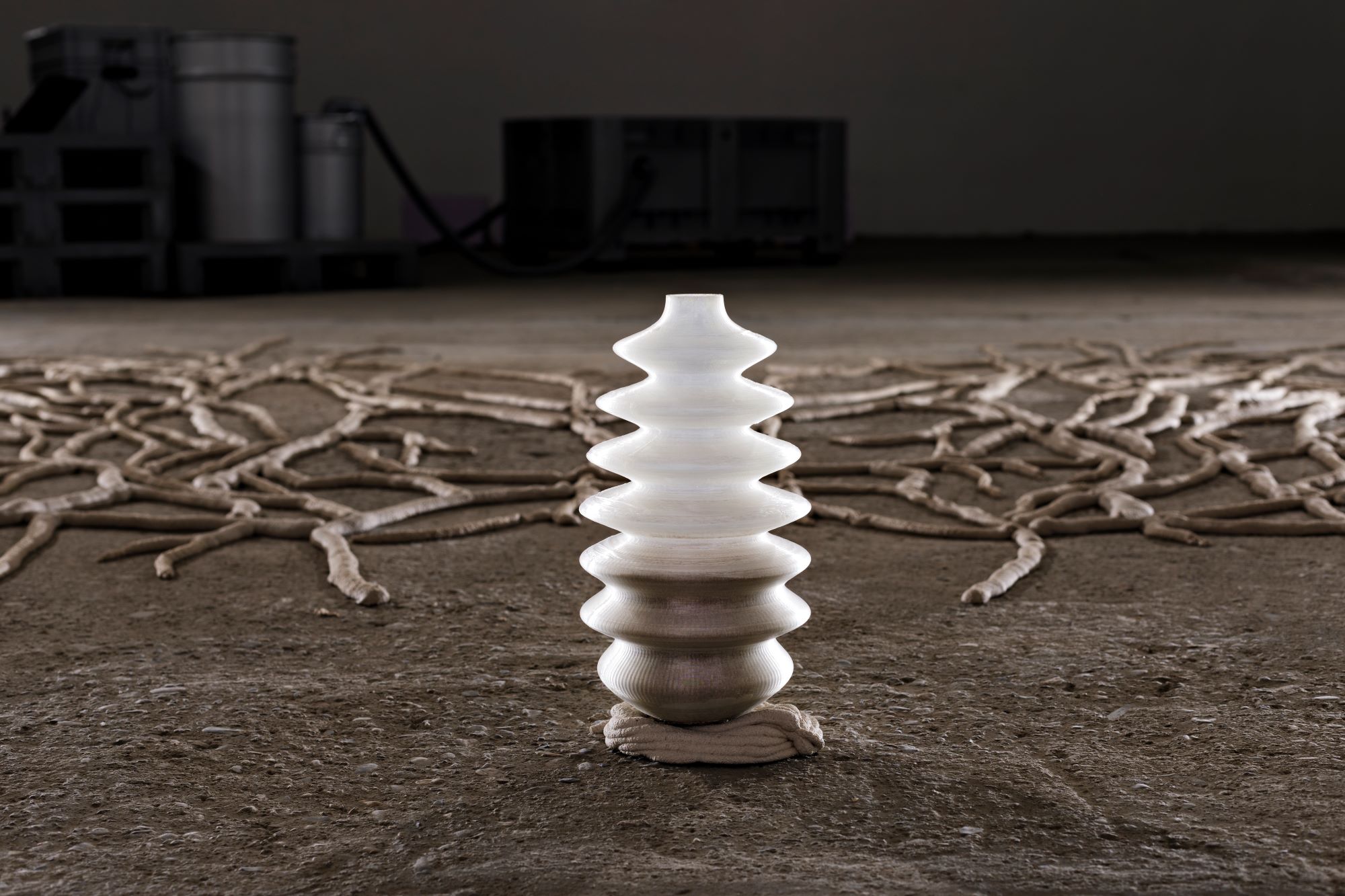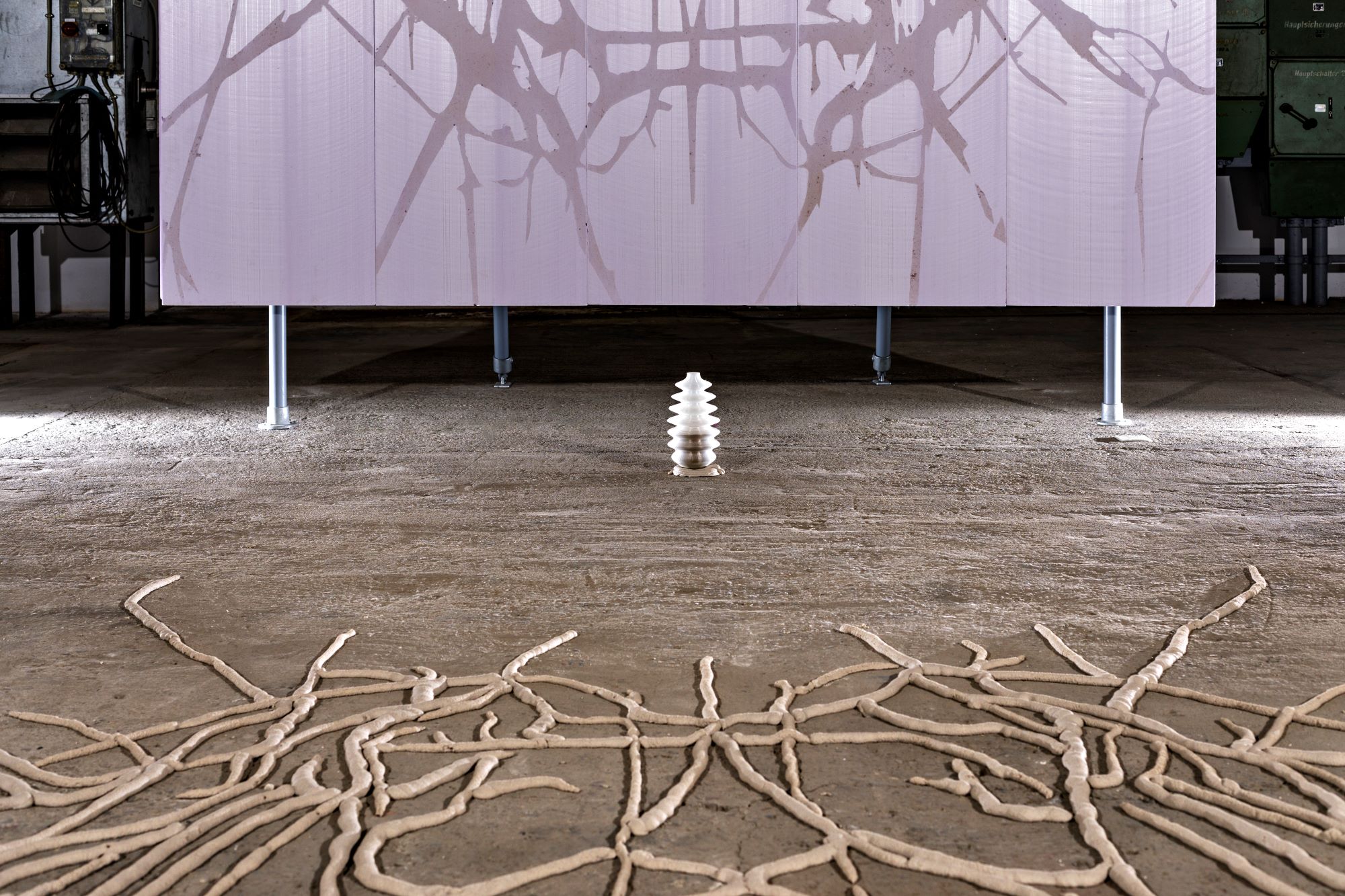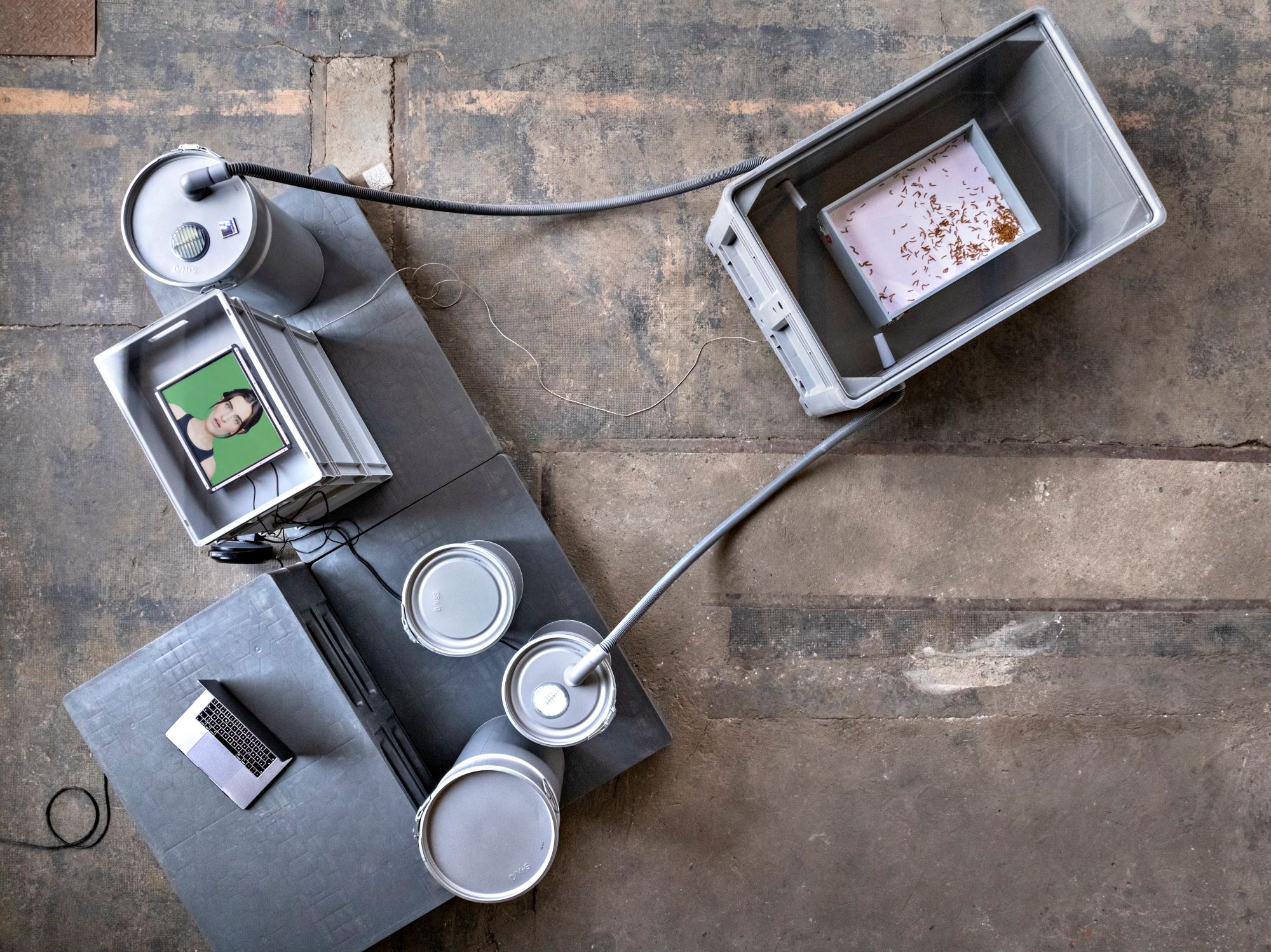 By deliberately combining organic and inorganic materials, HYBRIS challenges traditional material cycles and opens up new perspectives on sustainability in art. The relentless work of the mealworms—silent, tireless, and often unseen—becomes a metaphor for resilience and the ongoing renewal of life. In this context, Zschiedrich explores how the relationship between humans, nature, and technology can be reimagined.