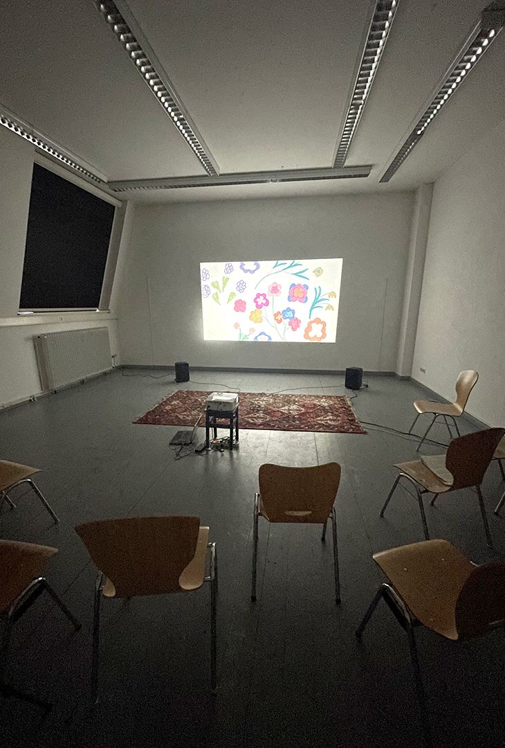 Raumansicht im Rahmen der Diplompräsentation Wir schneiden keine Blumen ab, 2026